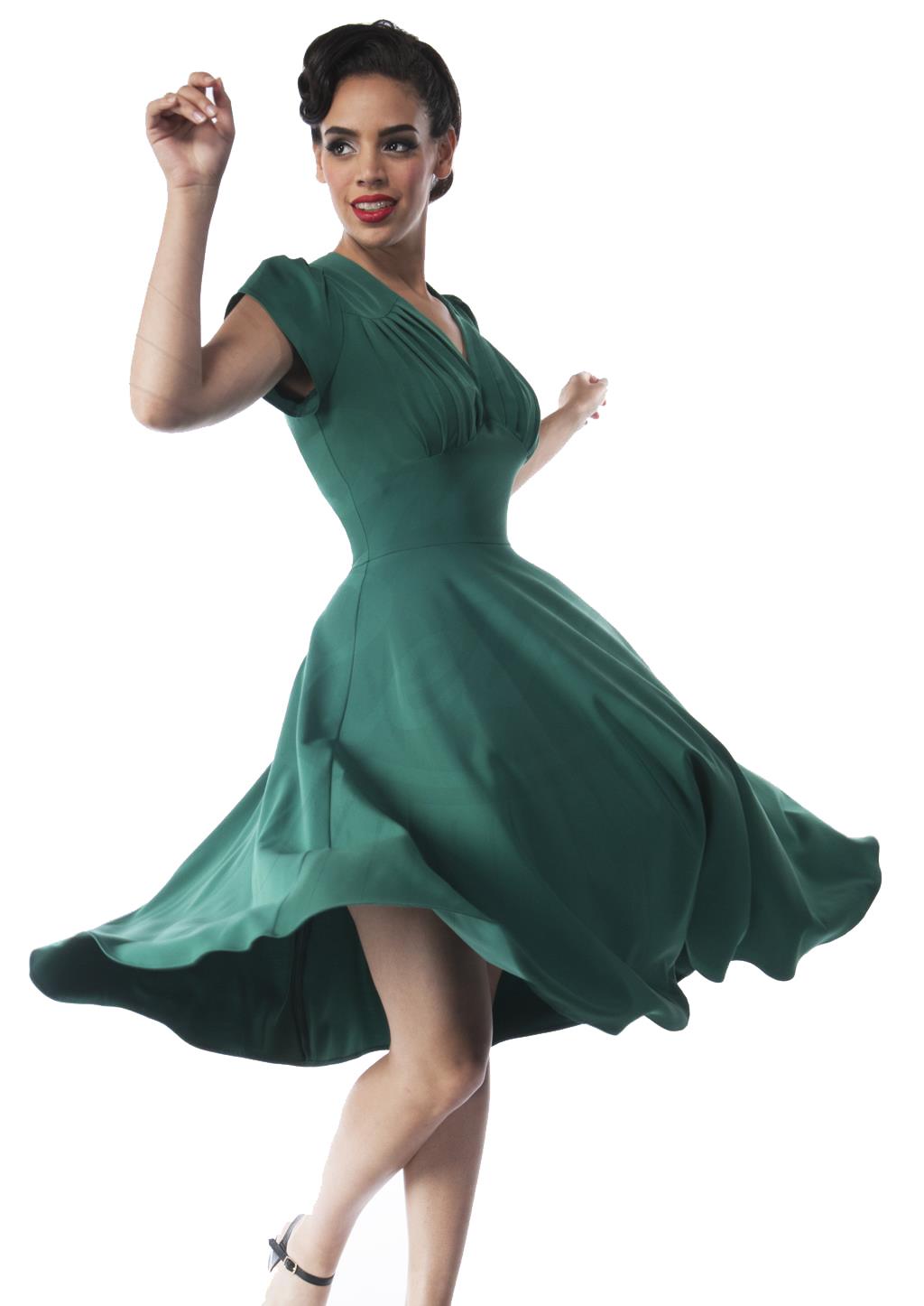 Emerald Green 1940s Vintage Inspired Swing Dress