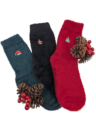 Fluffy Christmas Motif Socks - Red/Green/Black