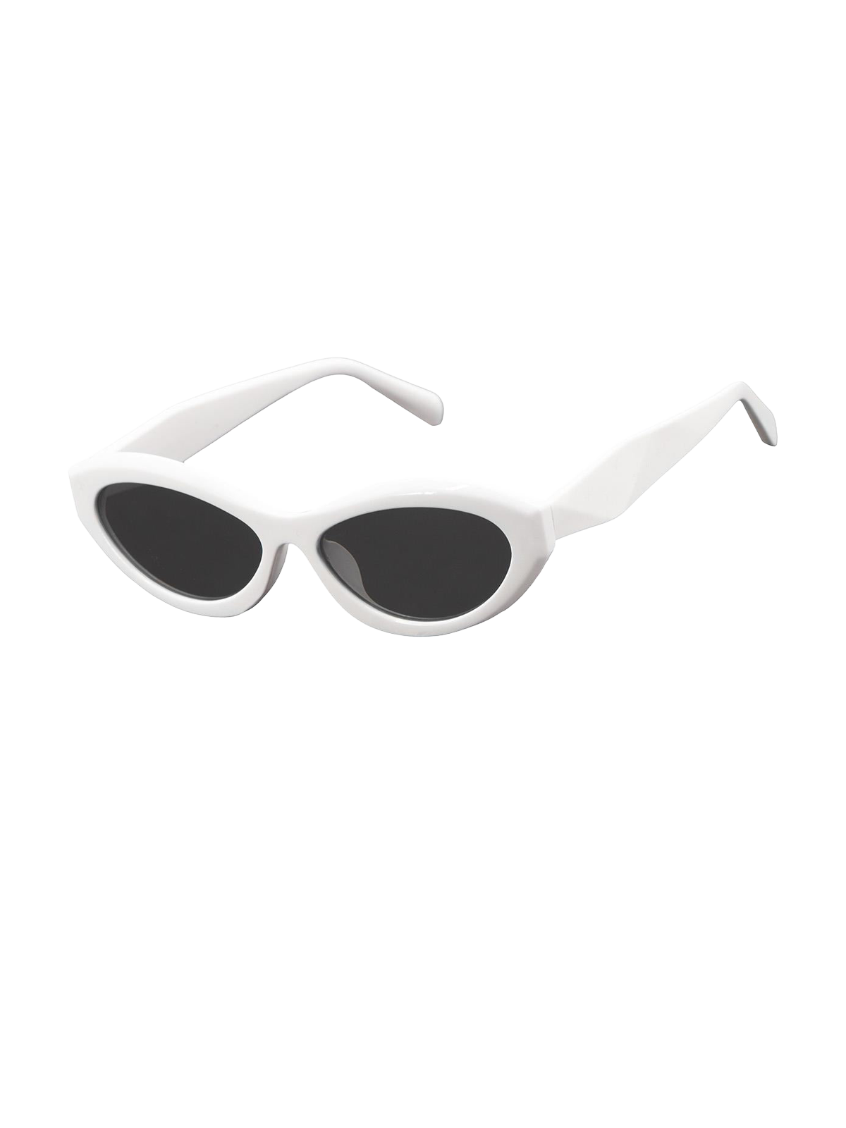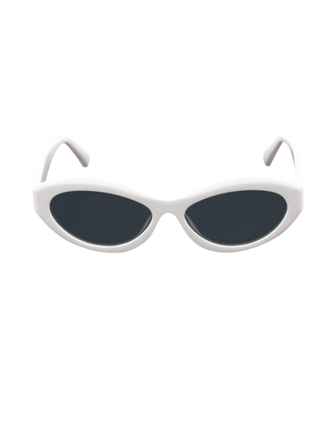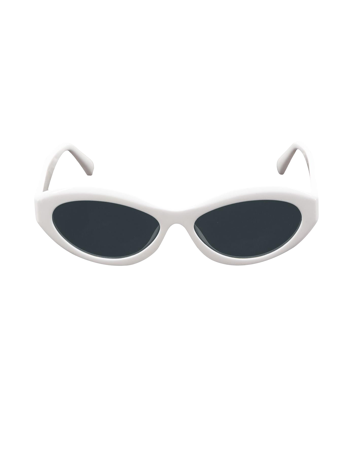 Vintage style rounded catseye sunglasses with a classic white frame. A luxurious style, perfect for your vintage inspired outfits.