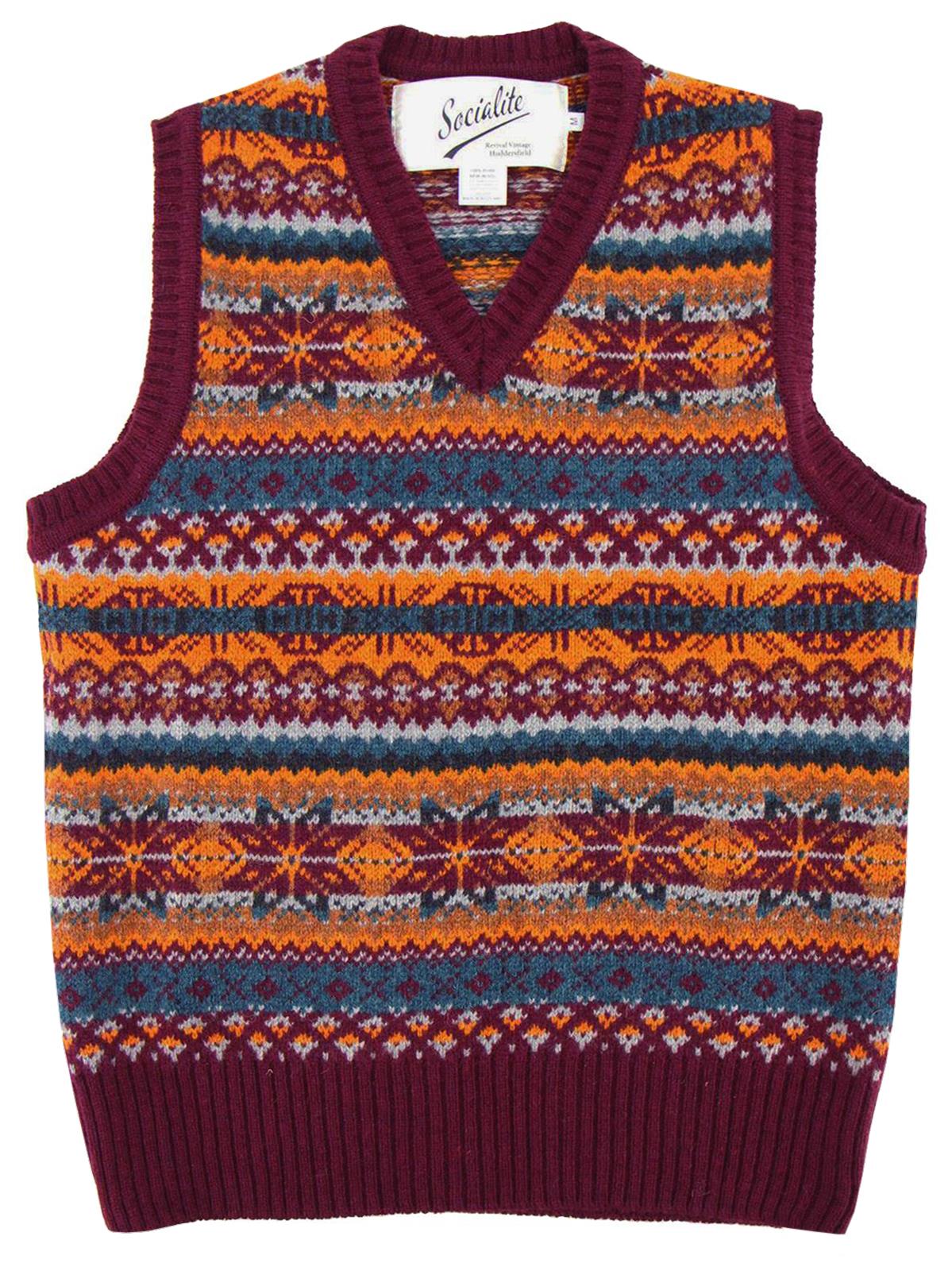 Forties Vintage Scottish Wool Fairisle Knit Tank Top in Bordeaux Red