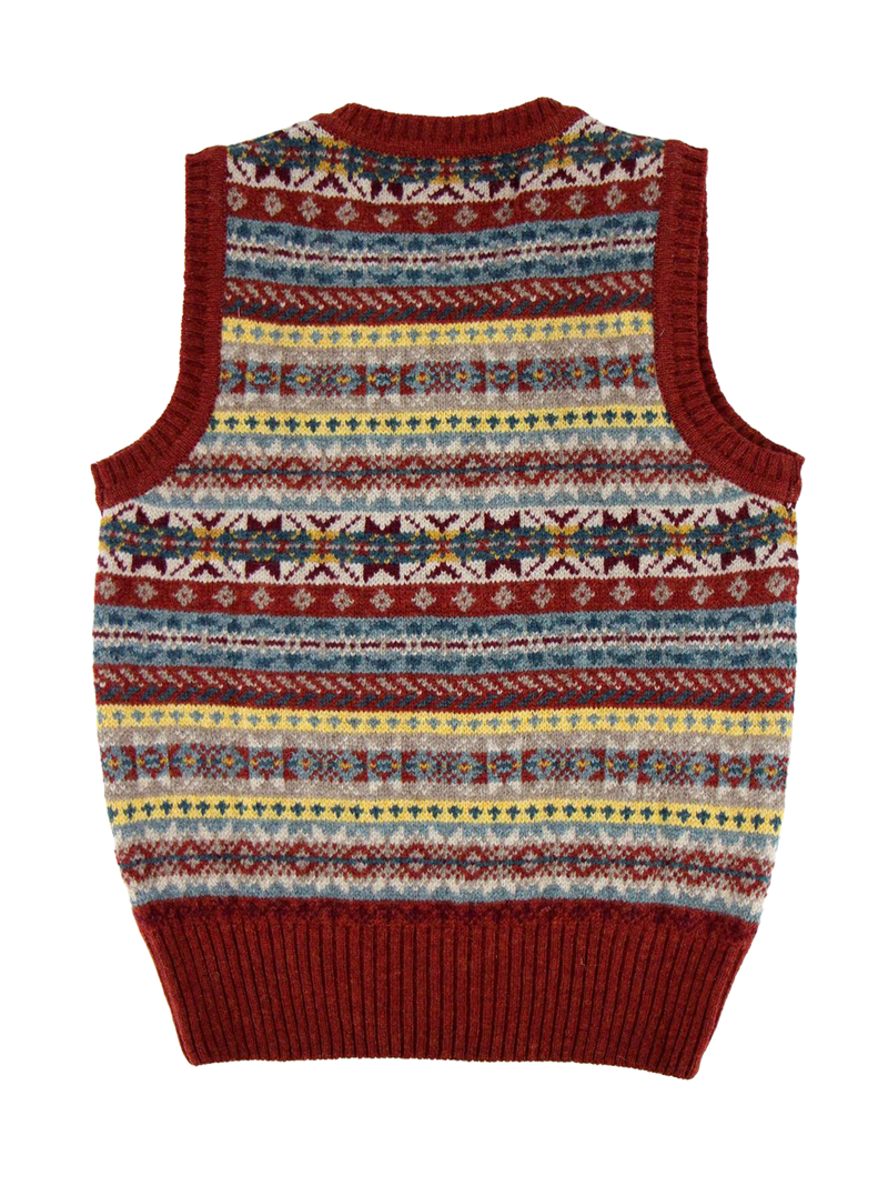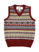 Forties Vintage Scottish Wool Fairisle Tank Top - Cardinal Red