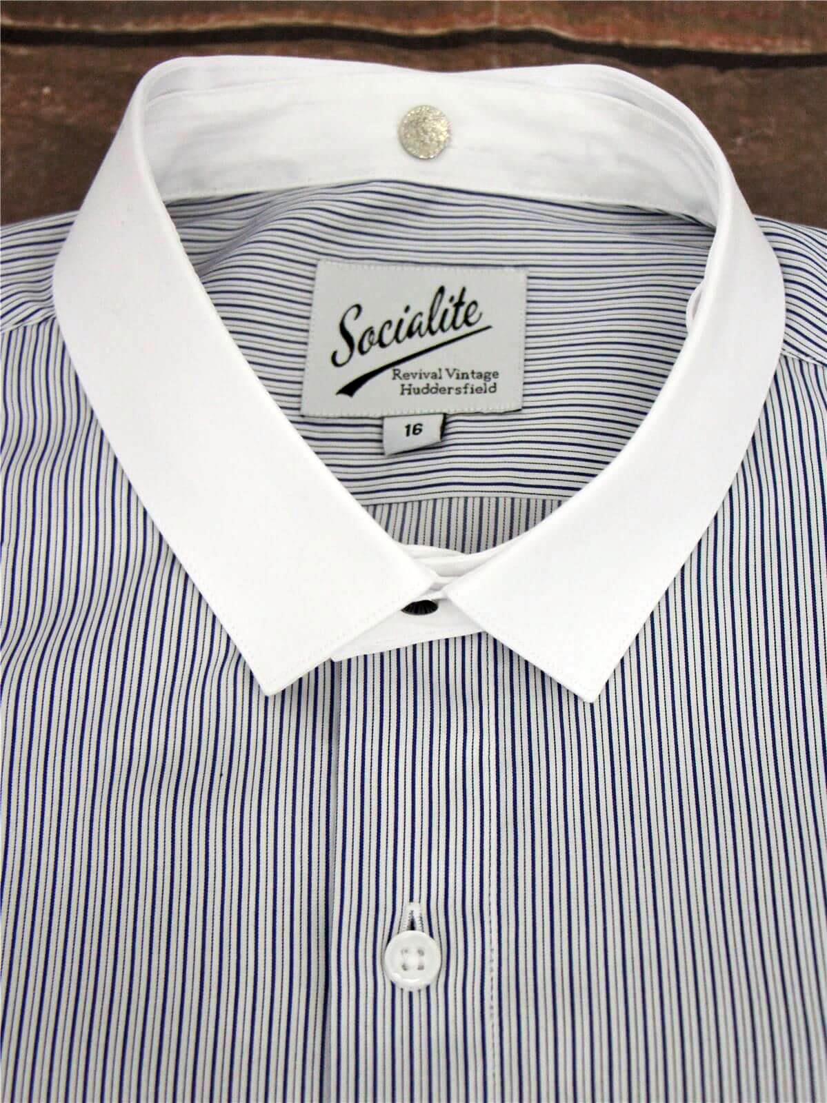 100% white cotton thirties and forties style bankers collar. To be attached with studs to one of our vintage-style "grandad" shirts that have a stand collar with buttonholes at the front and back.