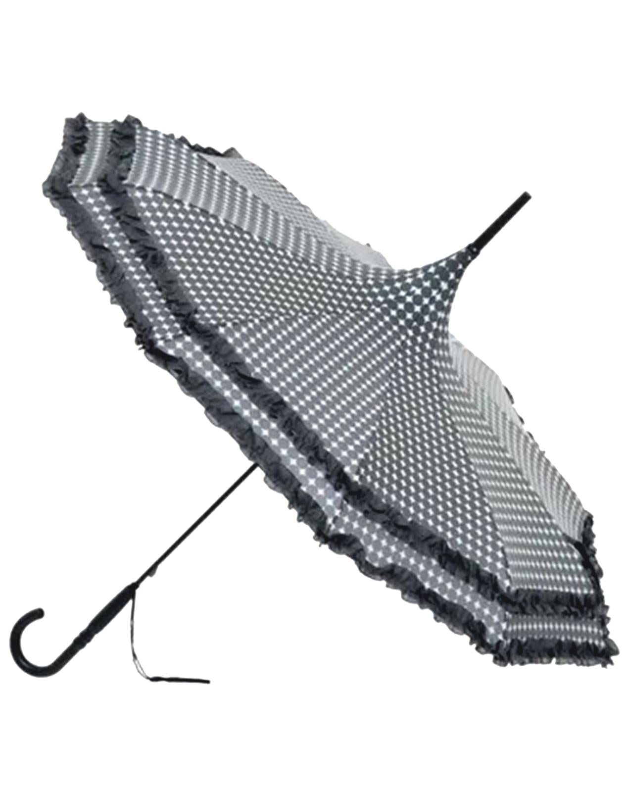 Frilly Grey Spot Vintage Pagoda Style Parasol Umbrella