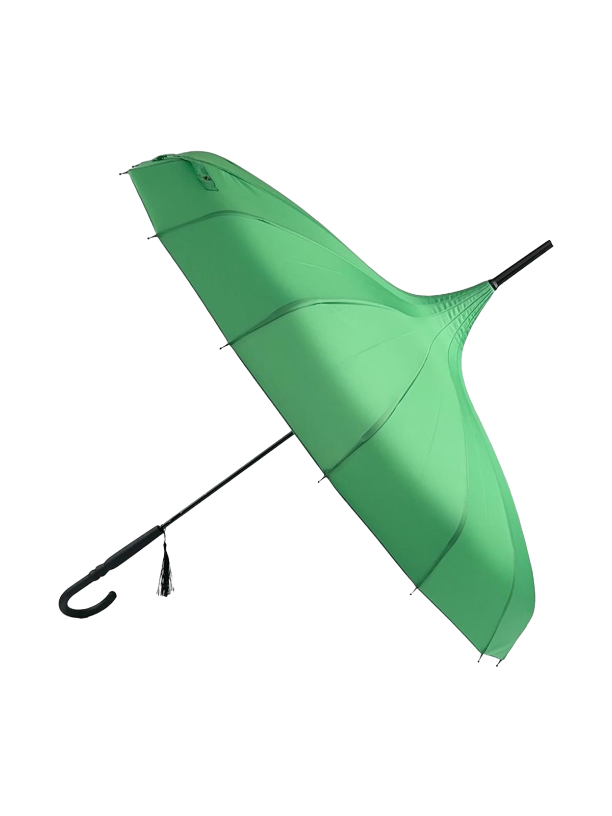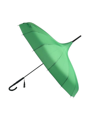 Timeless green pagoda vintage look umbrella. Protect your vintage outfits in inclement weather with a perfectly complementary accessory.