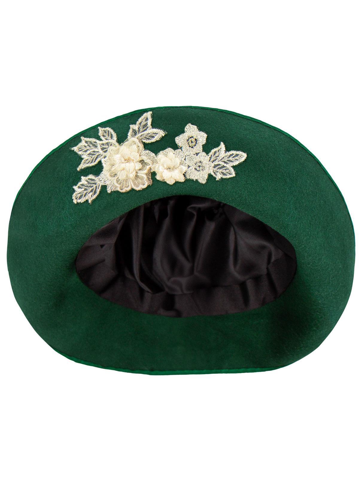 Green Floral Applique 1940s Vintage Style Halo Hat
