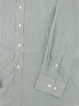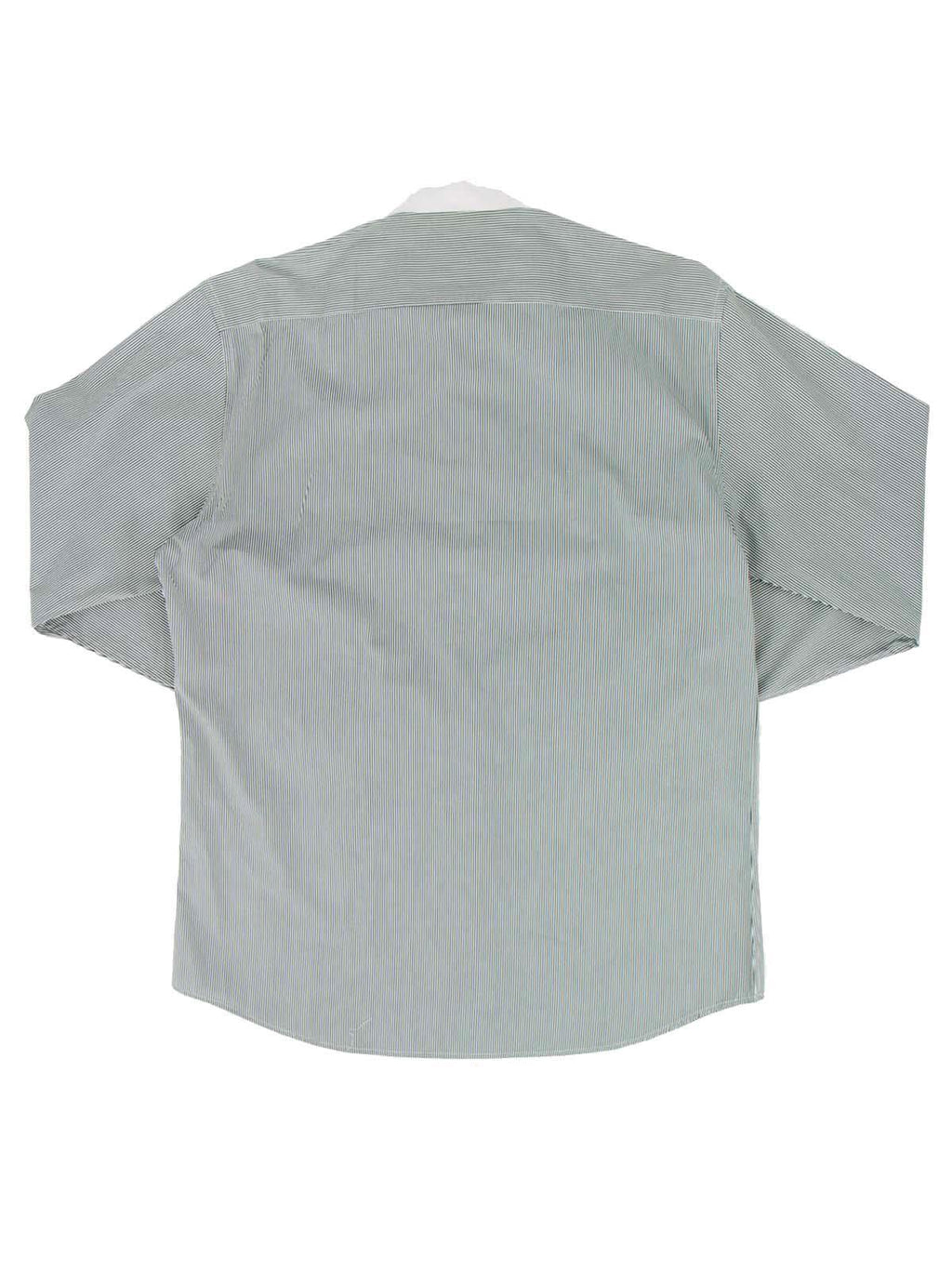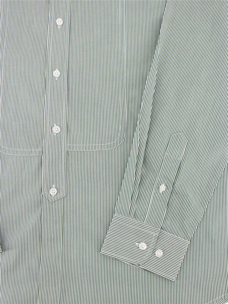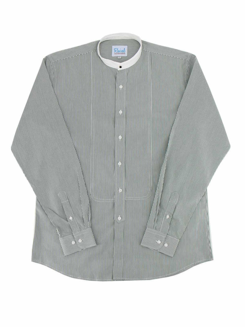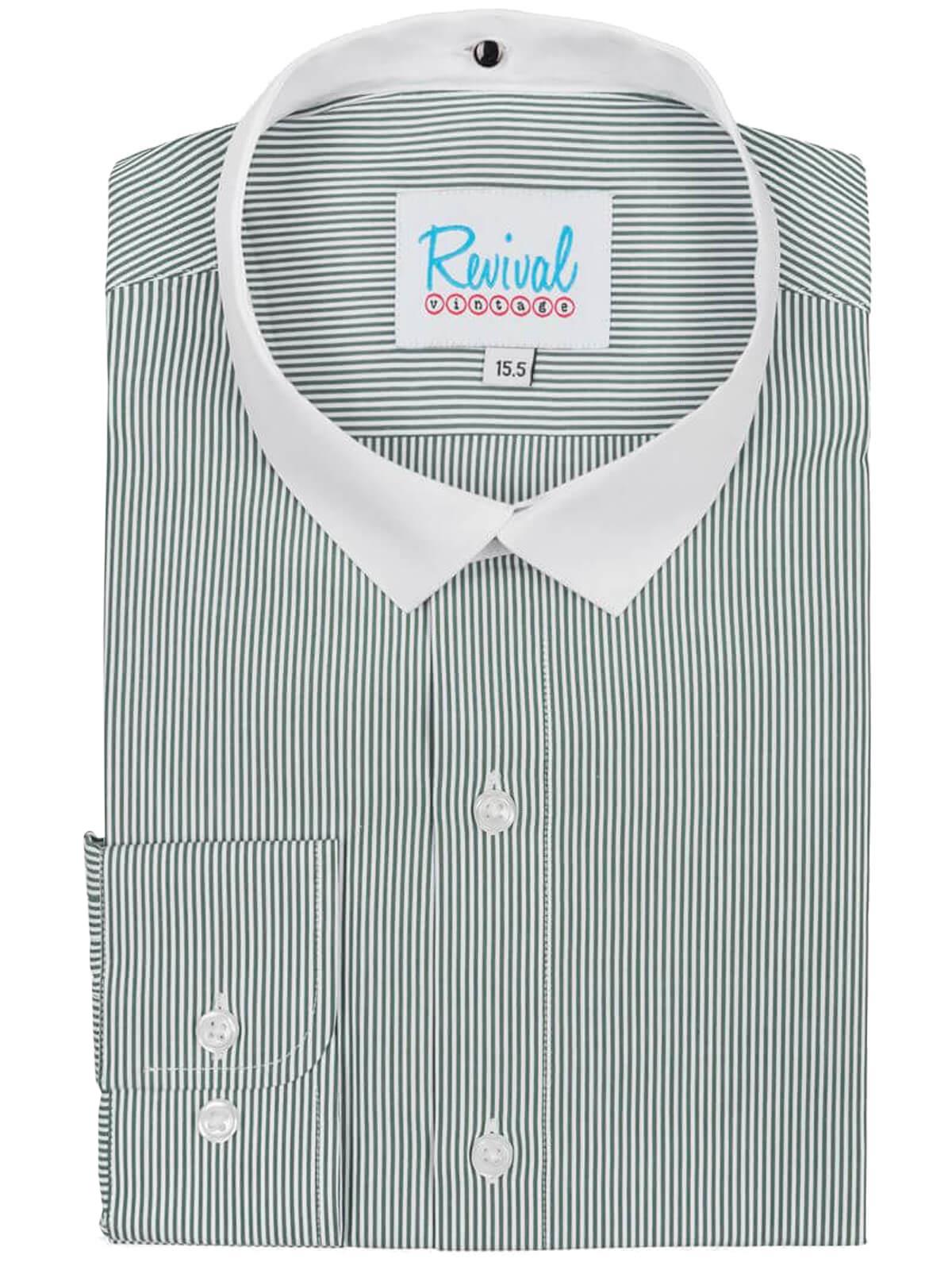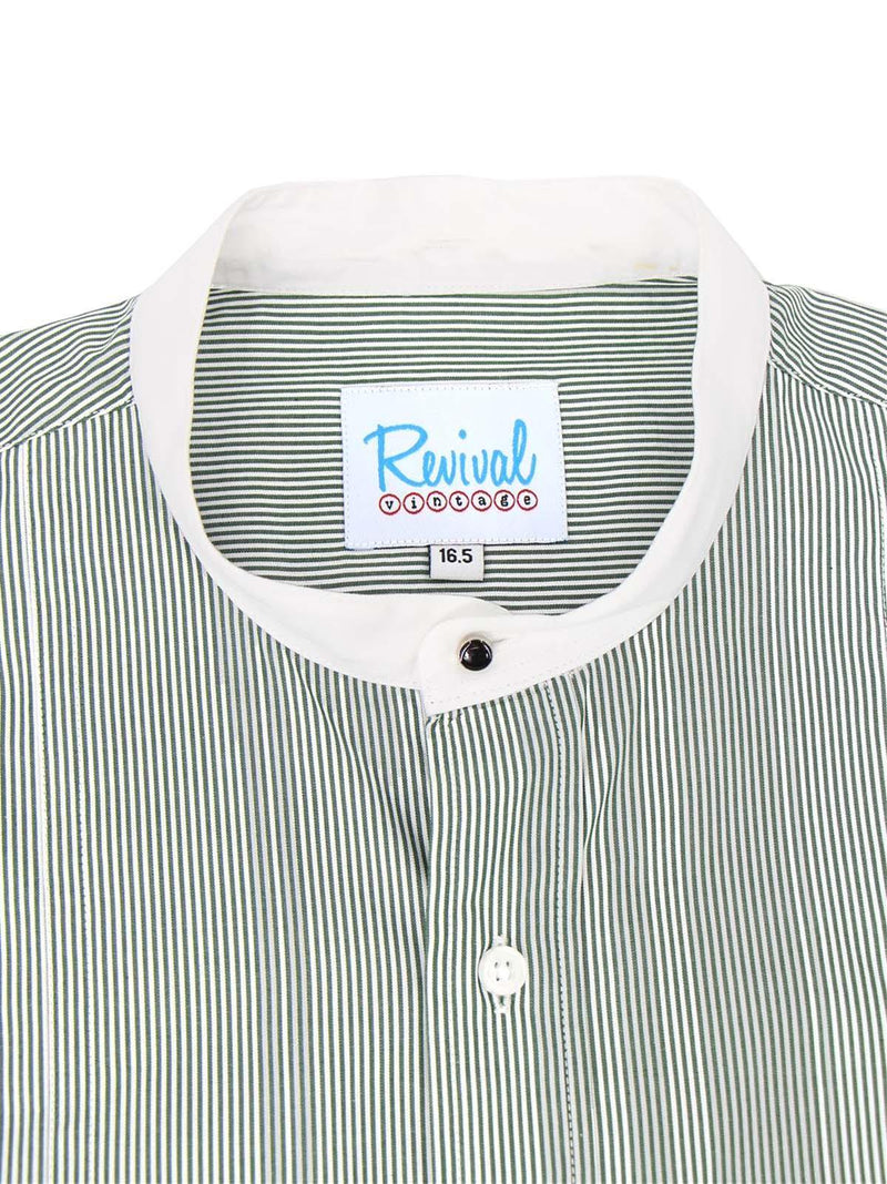 Green Stripe Collarless Grandad Shirt with Detachable Bankers Collar