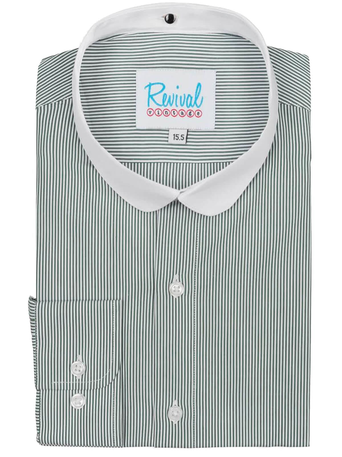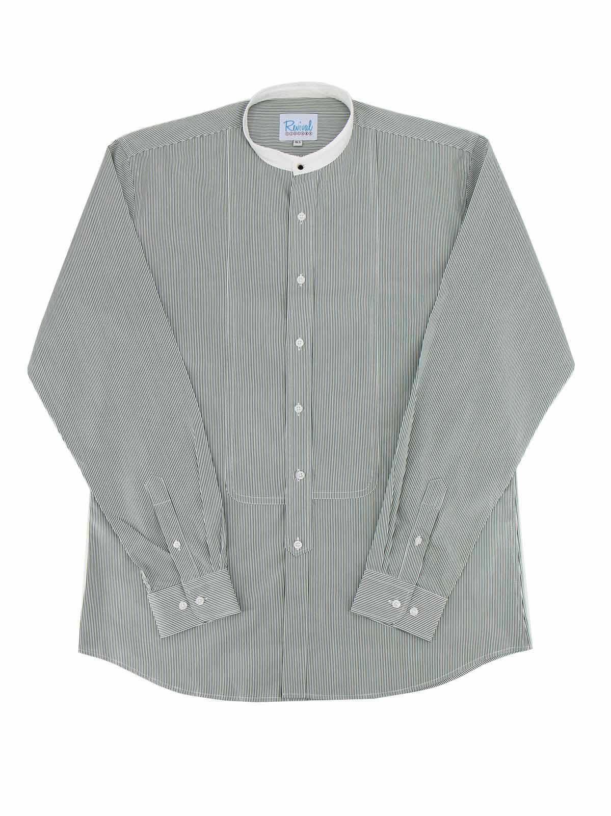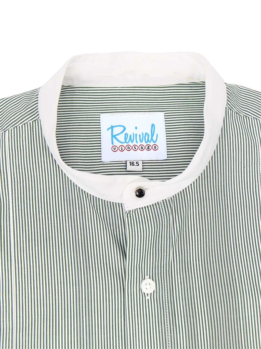 Green Stripe Collarless Grandad Shirt with Detachable Club Collar