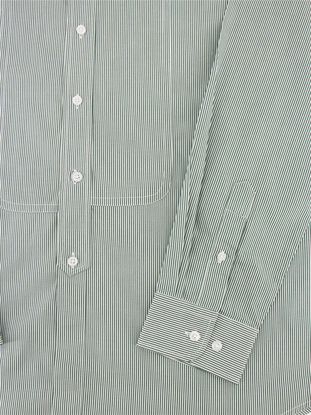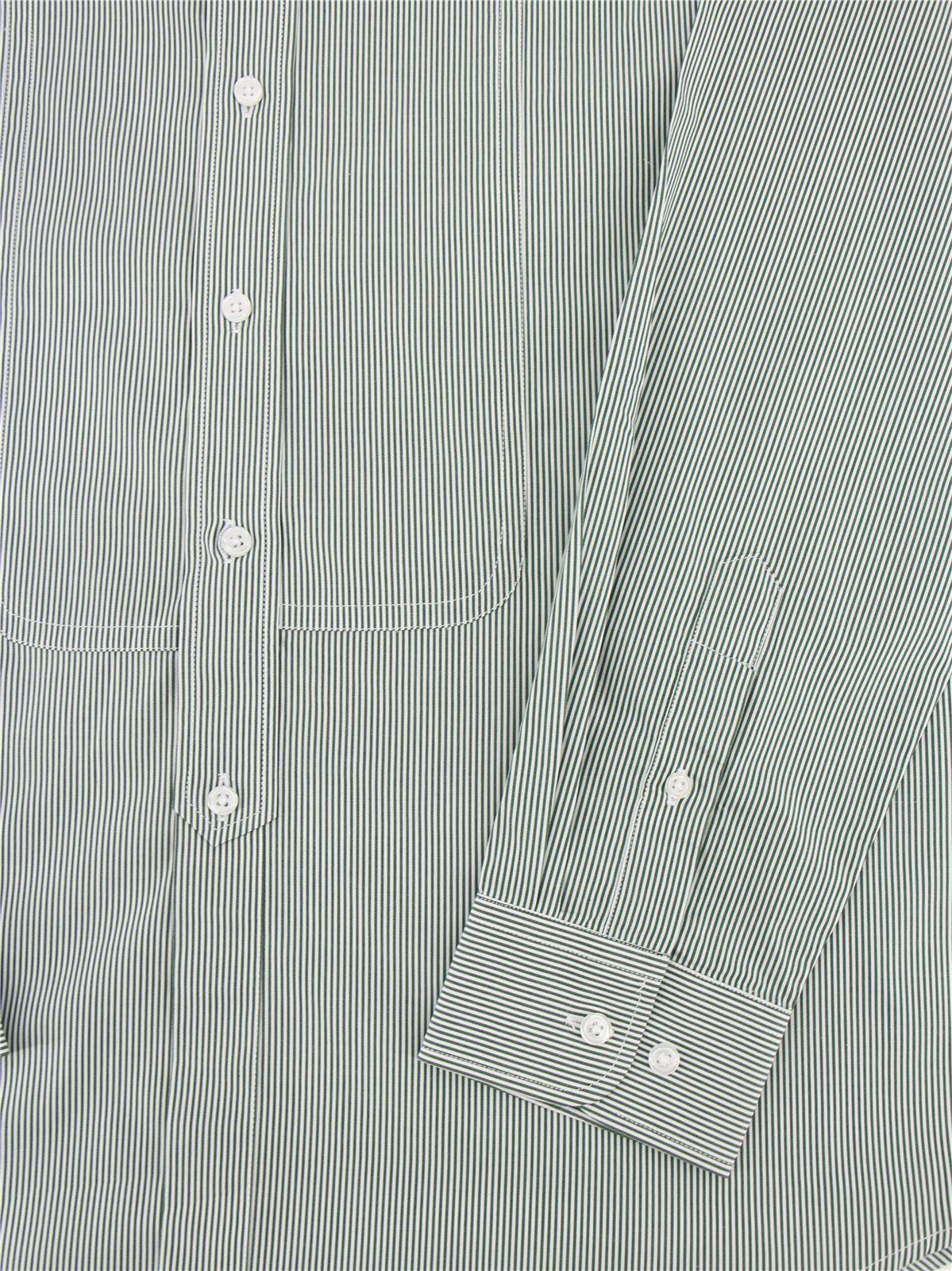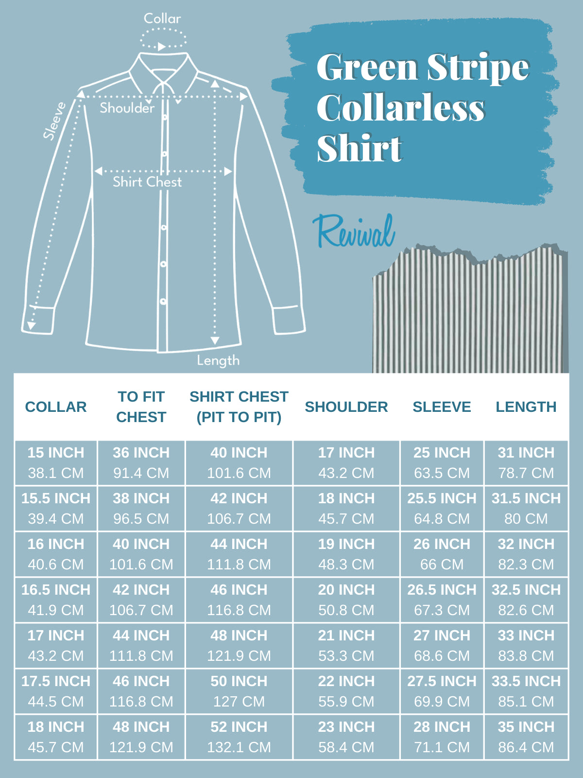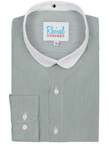 Green Stripe Collarless Grandad Shirt with Detachable Club Collar