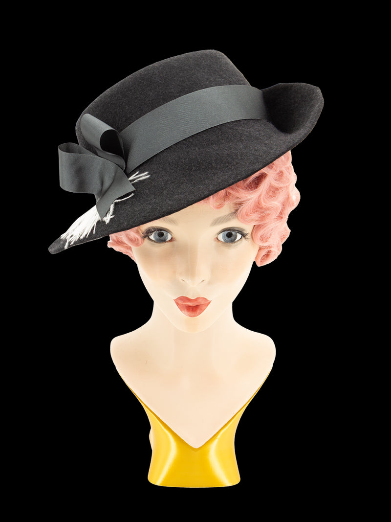 Handmade 1940s Style Bow Trilby - Charcoal Grey