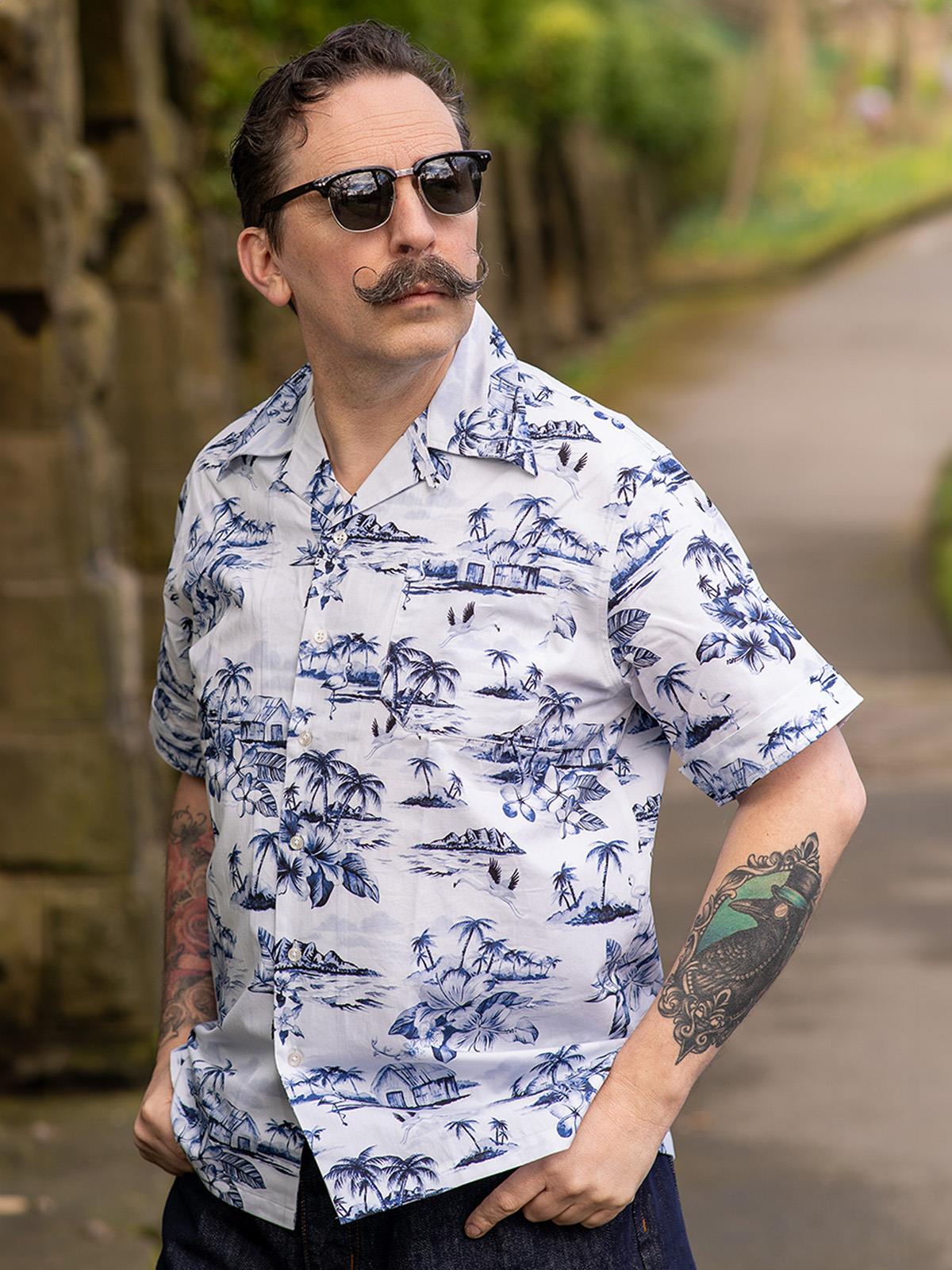 Inspired by the authentic styles of the 1940s and 1950s, we introduce our Hawaiian shirt, crafted from 100% cotton. If you love the vintage look but want something more casual than a suit, this shirt is for you.