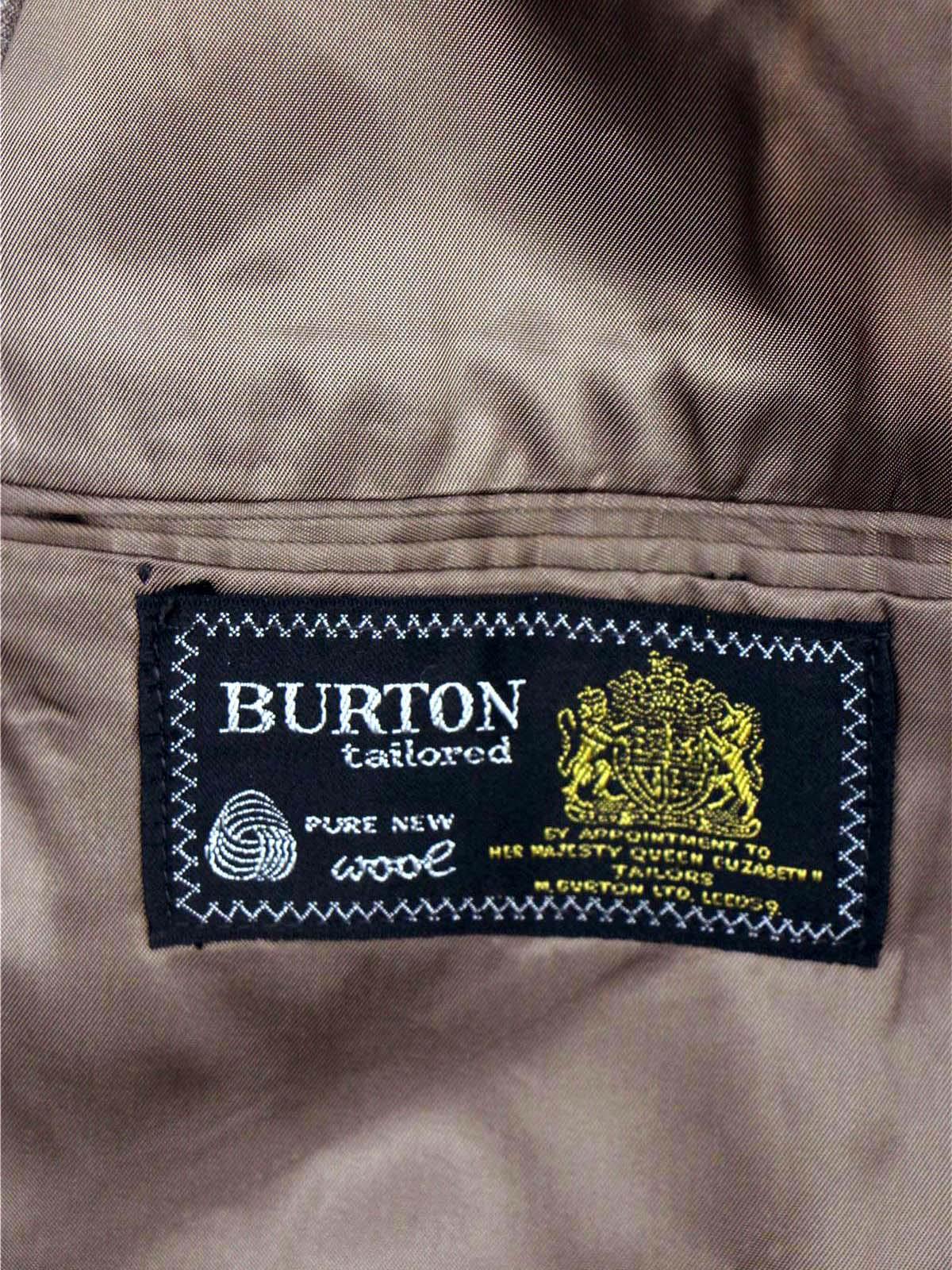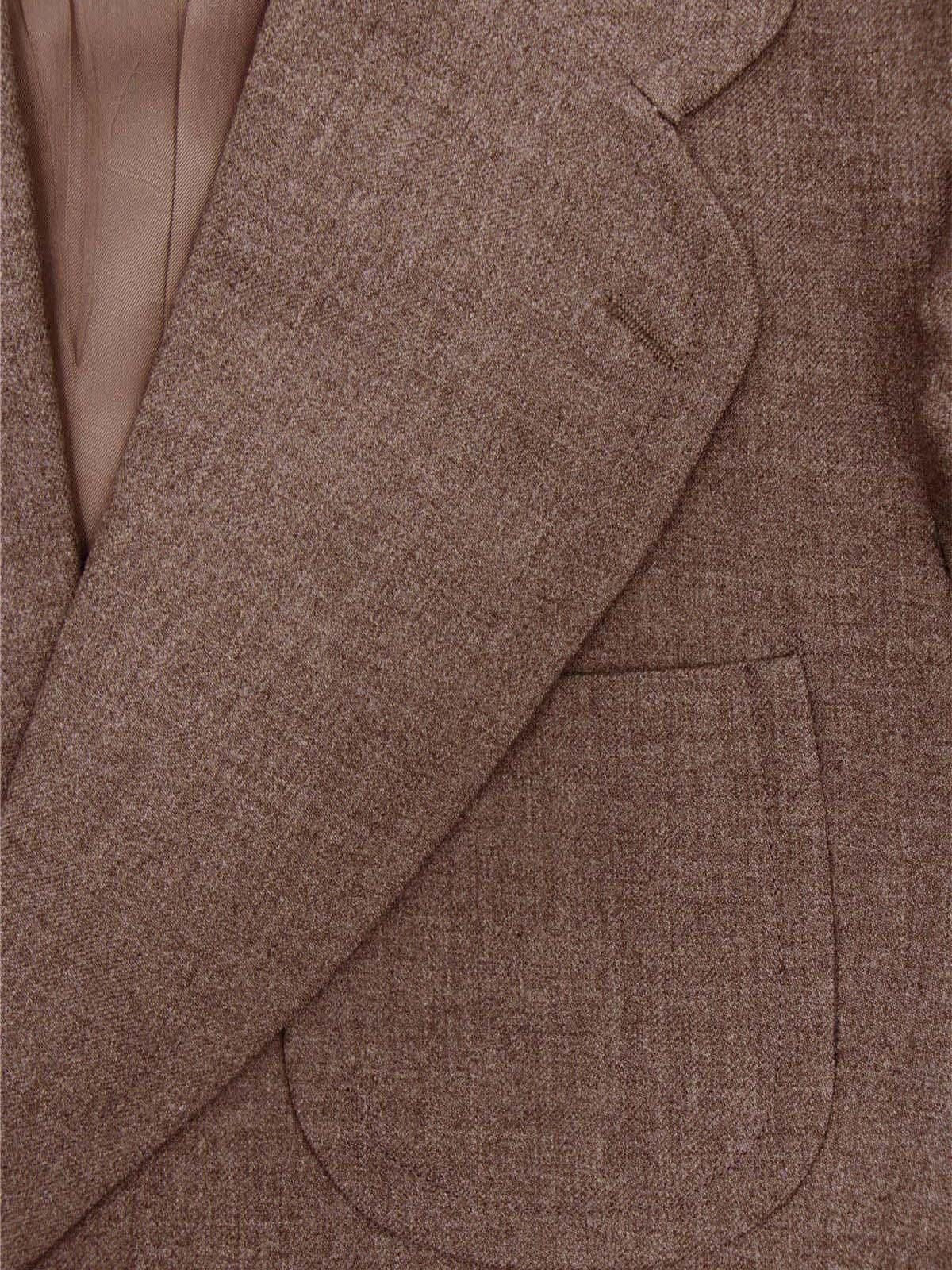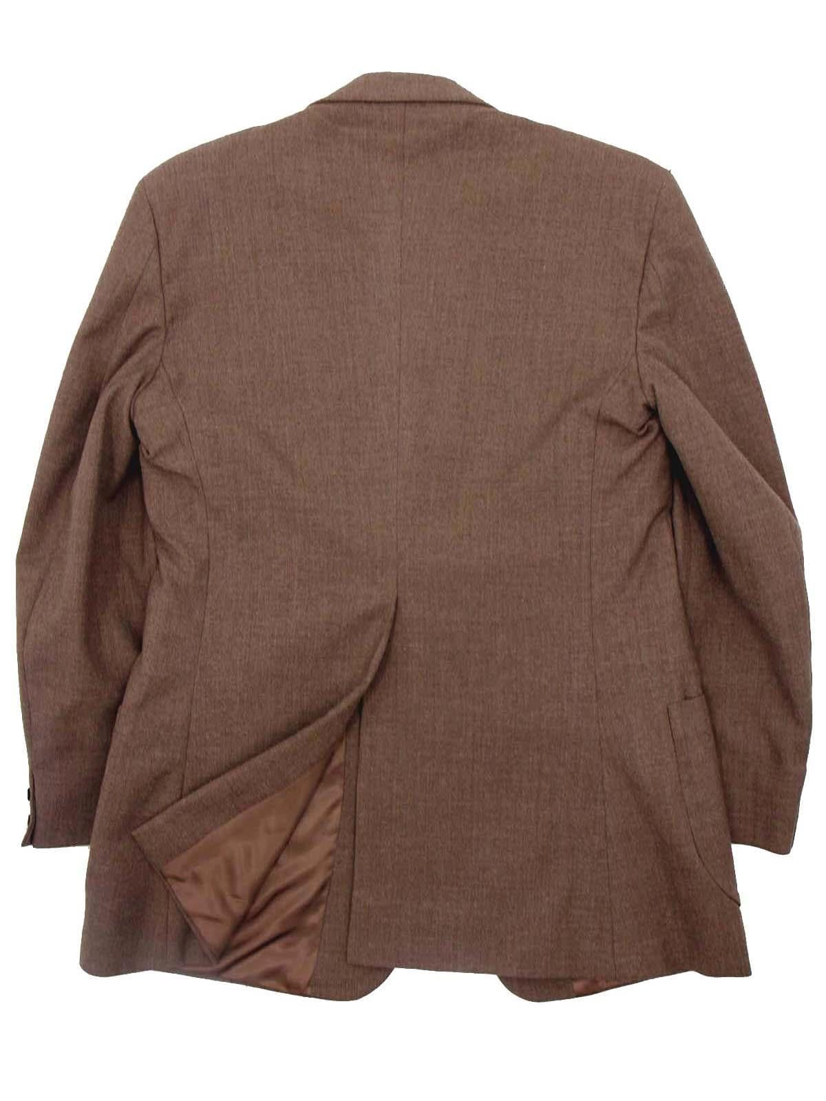 The jacket has a single back vent, two large patch pockets and one smaller patch breast pocket. Two buttons showing at each cuff. Lined with brown fabric.
