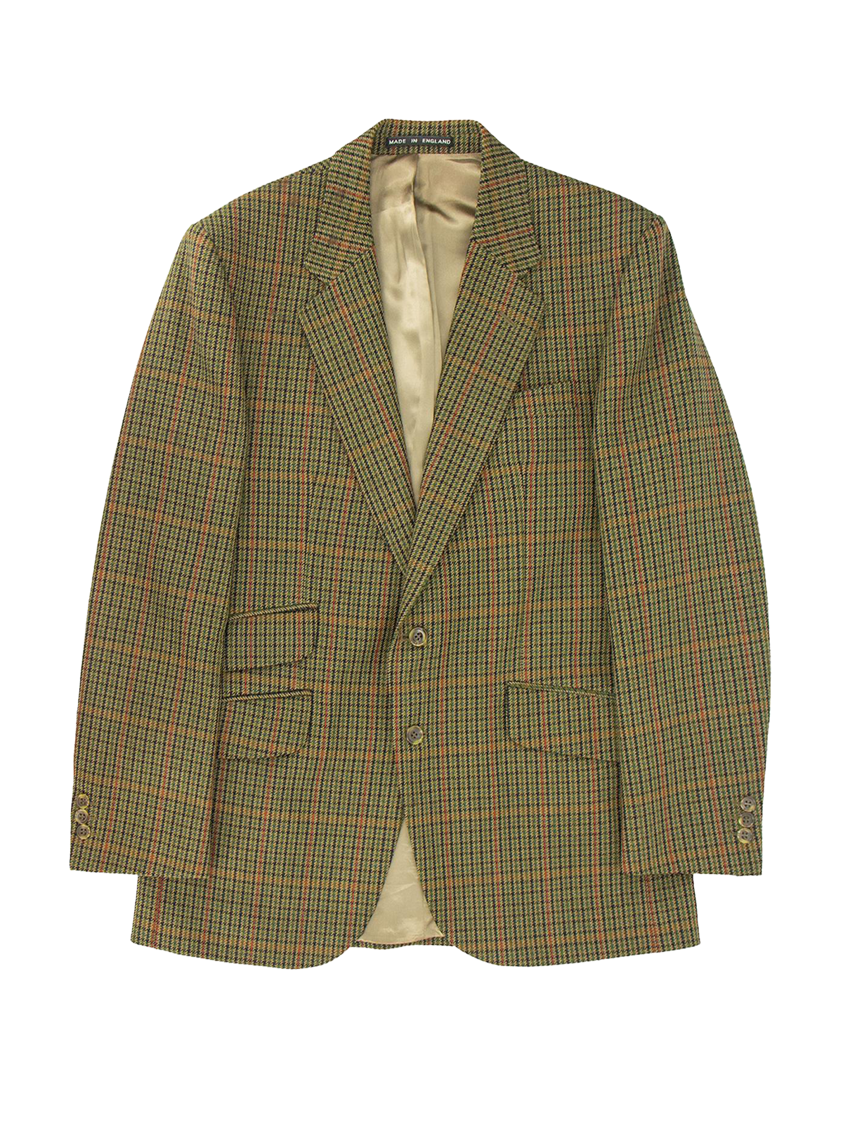 This true vintage green tweed jacket is woven in checks of blue, red & green.