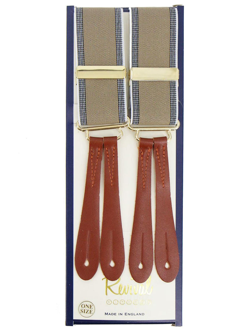 Khaki Border Stripe 1940s Style Braces with Leather Loops