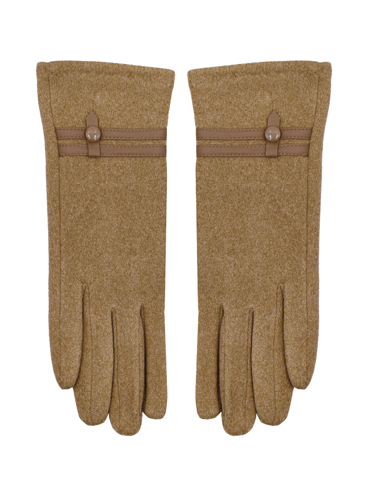 Leather Detail Camel Brown Vintage Style Winter Gloves