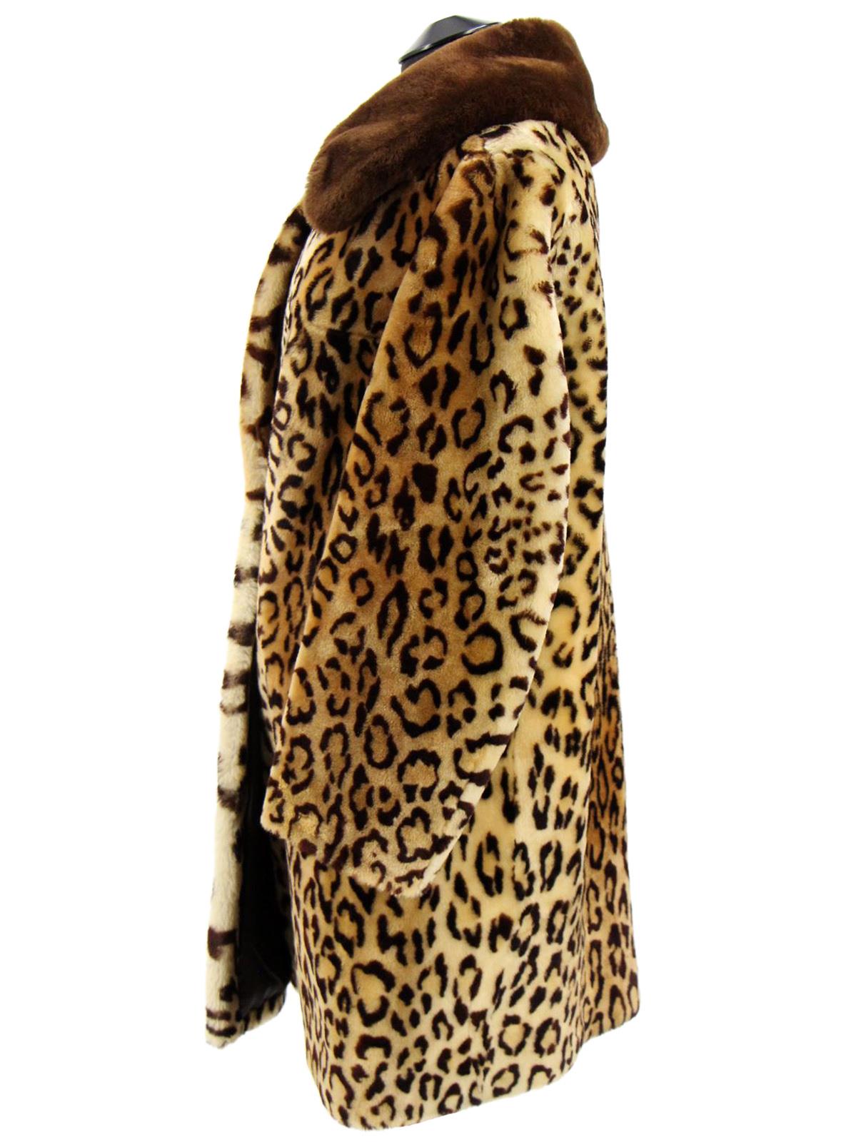 This original sixties coat is made of soft tonal leopard faux fur and has an adorable rounded Peter Pan-style collar. It has an oversized cut that feels luxurious to wear.