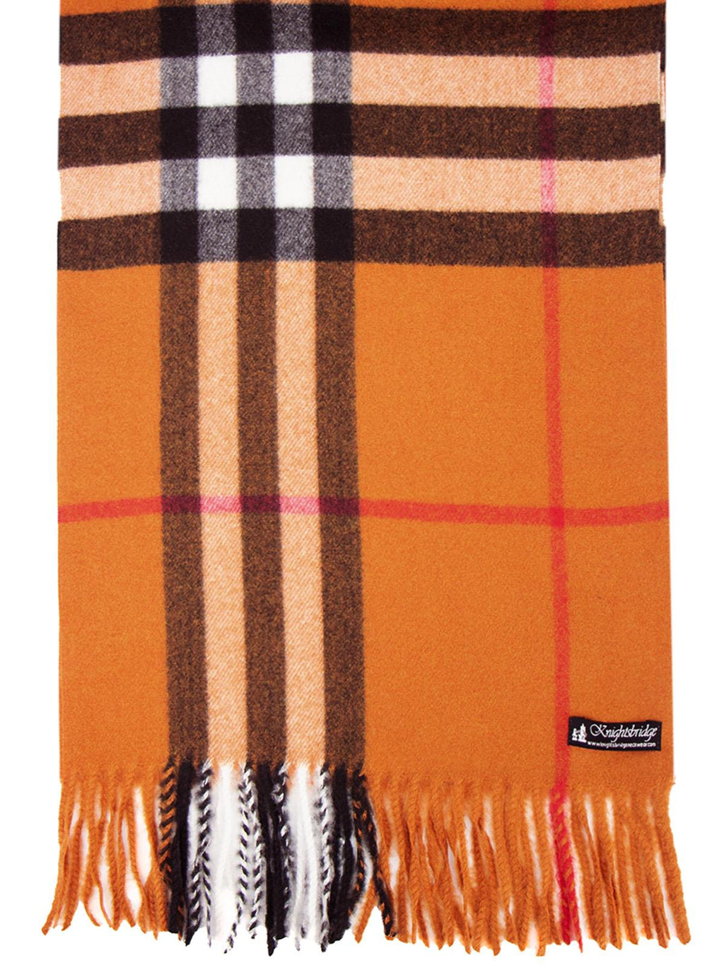 Luxury Soft Wool Check Scarf - Burnt Orange