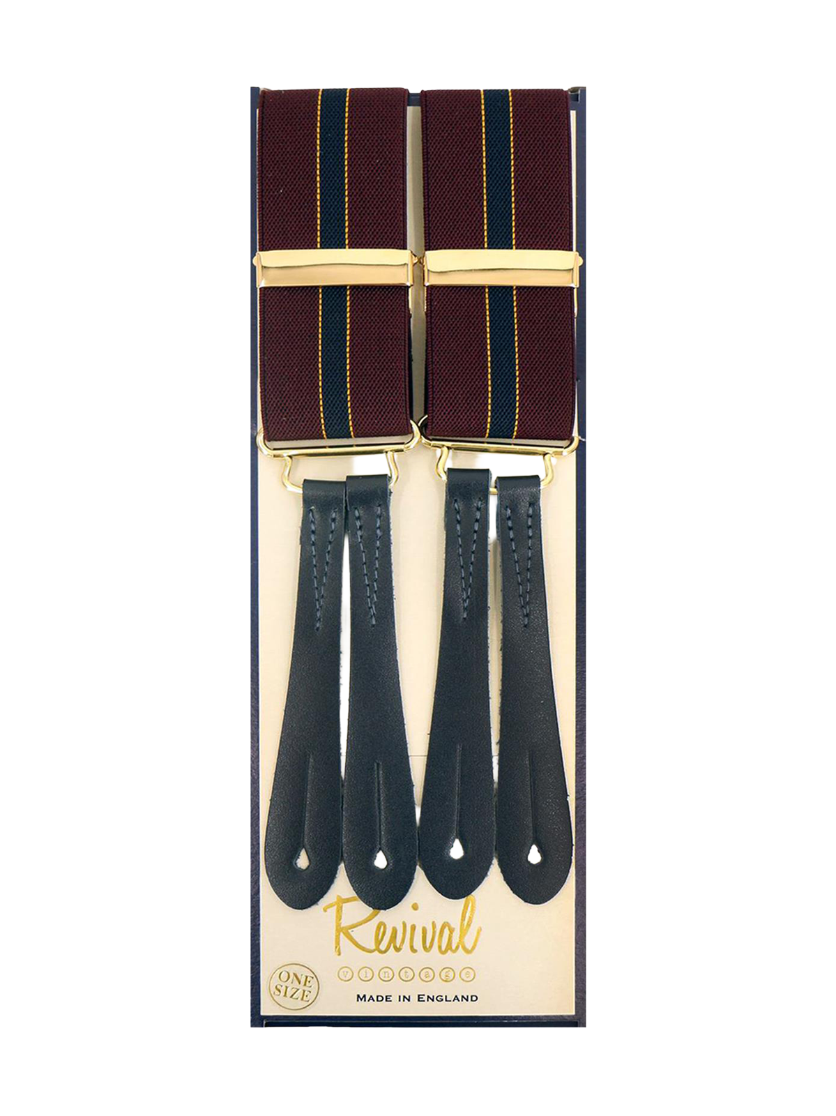 Maroon & Blue Stripe Braces with Blue Leather Loops