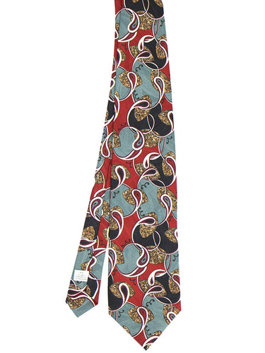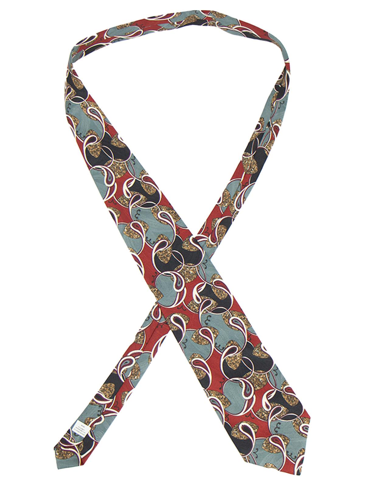 Men's vintage tie from Burtons. A paisley-shaped abstract pattern in harmonious tones of dark red, black and grey.