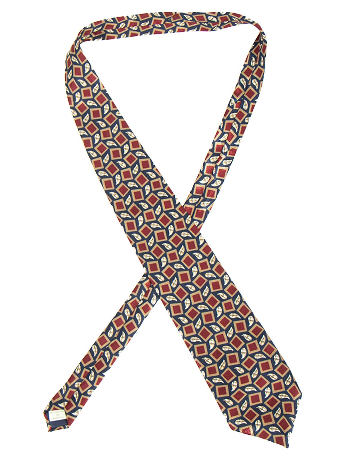 Men's vintage tie from Burtons. A square and paisley shape abstract pattern in classic tones of navy blue, maroon and beige. Great with either a brown or blue vintage suit. 100% polyester.