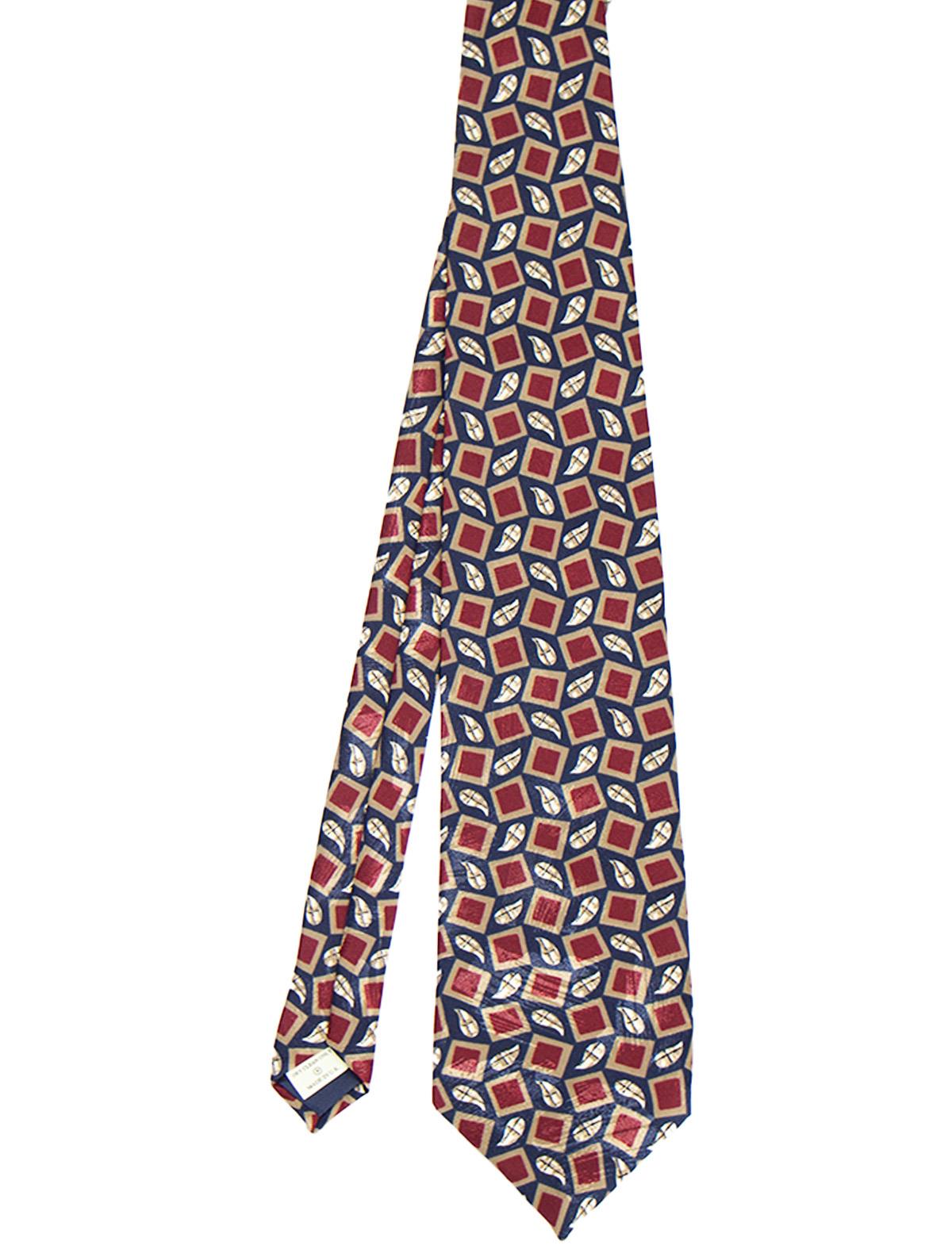 Mens Vintage Tie Abstract Square Pattern Navy & Dark Red