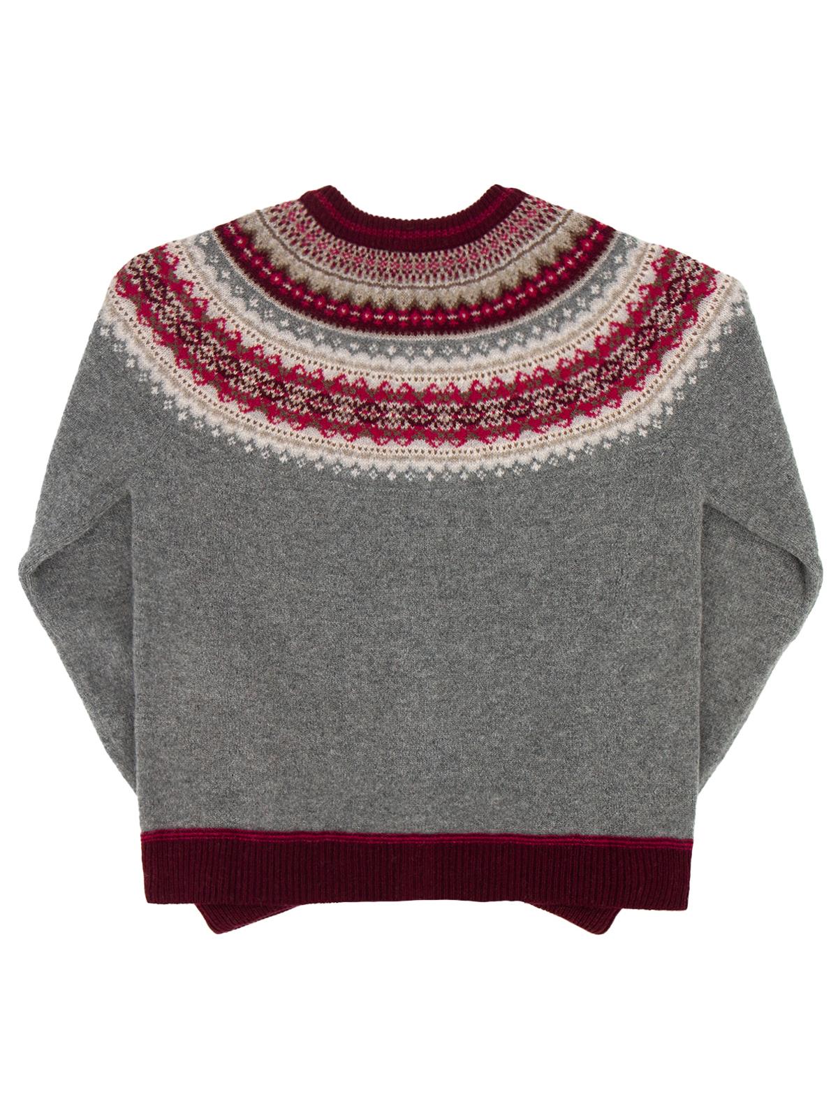 - Sweet Fairisle patterning in a rounded shape across the shoulders and at the sleeve cuffs