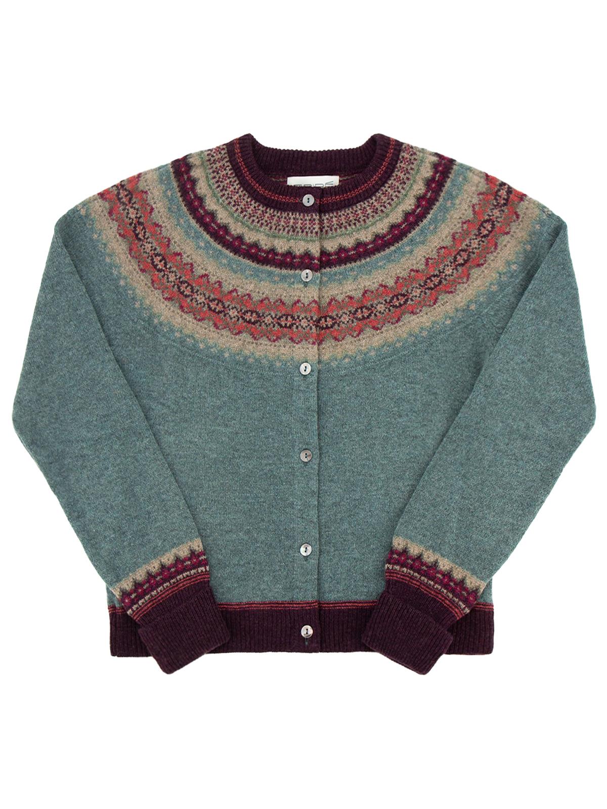 Merino Lambswool Alpine Cardigan - Old Rose Blue
