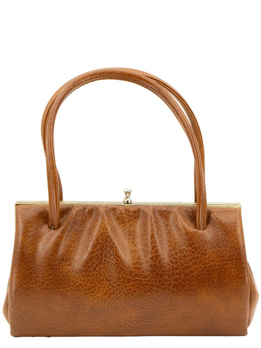 Mid Century Frame Handbag Brown With Gather Detail