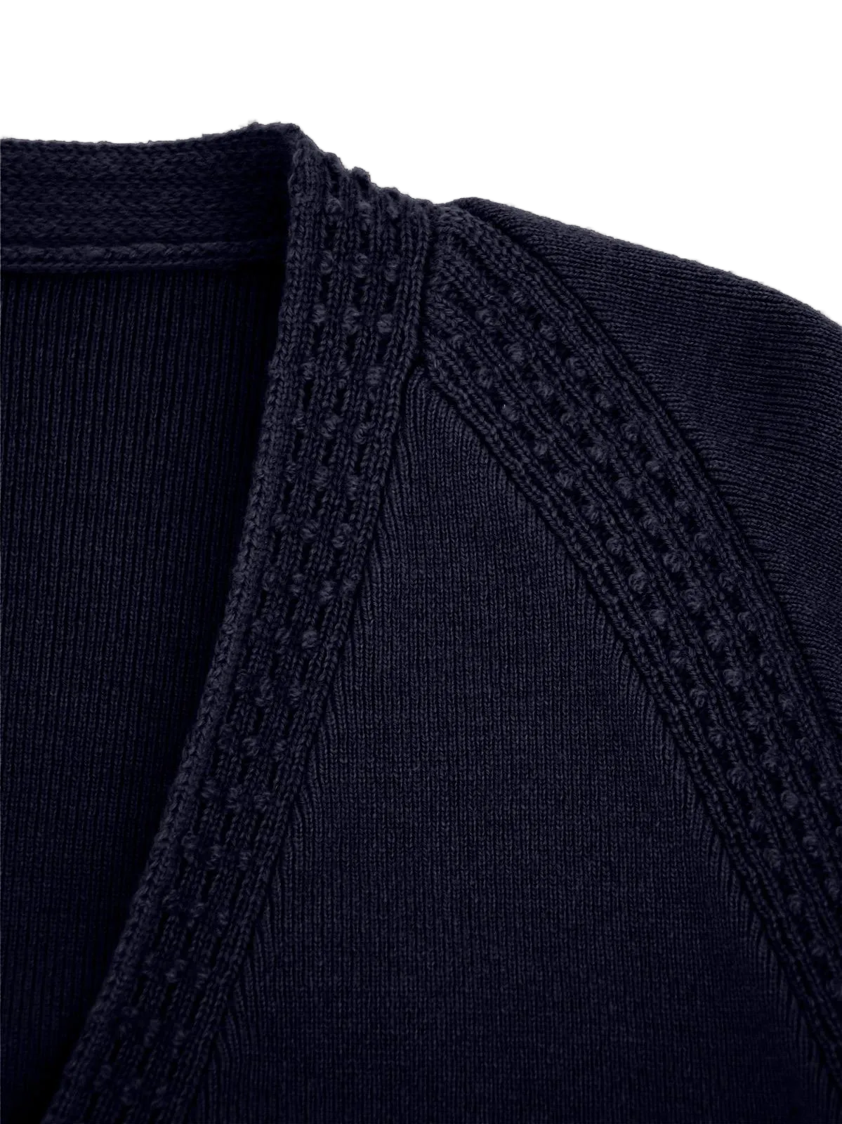 The shorter length of this vintage-inspired cardigan makes it an ideal match for retro dresses or high-waisted jeans. It stops at the waist rather than creating a bulky silhouette, making it an elegant choice for outfits inspired by the 1940s or 50s.
