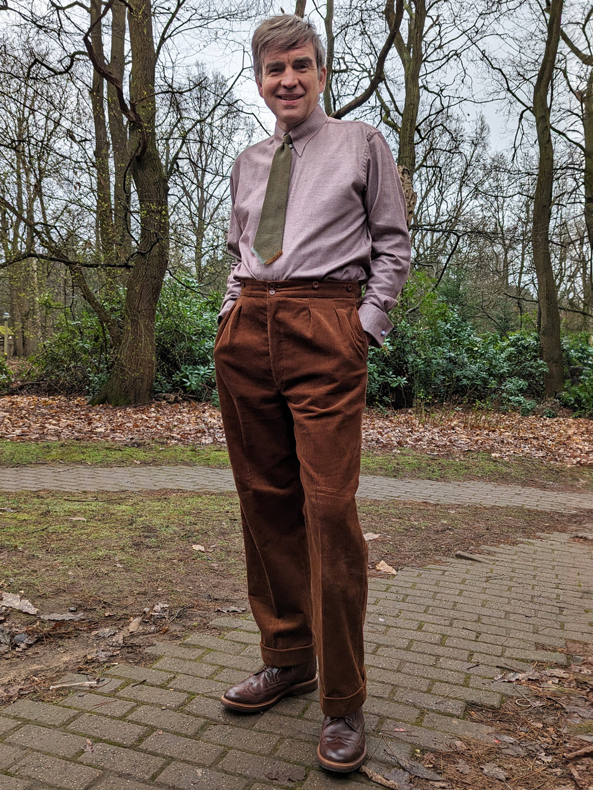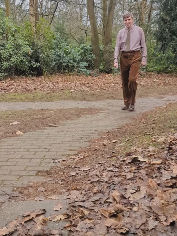 Presenting another fine example of our authentic reproduction trousers, faithfully recreated from a late 1940s original in our archive. This version of our Edwin trouser is made from soft, tactile cotton corduroy in a rich chestnut brown, a perfect choice for cooler seasons and vintage styling.