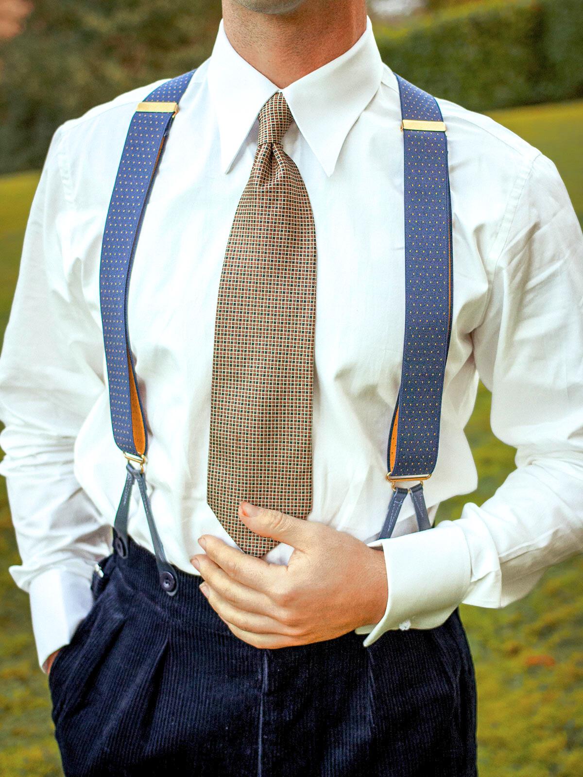 A superb reproduction with classic late 1940s character, ideal for pairing with our spearpoint shirts, waistcoats, or knitwear for an authentic vintage look.