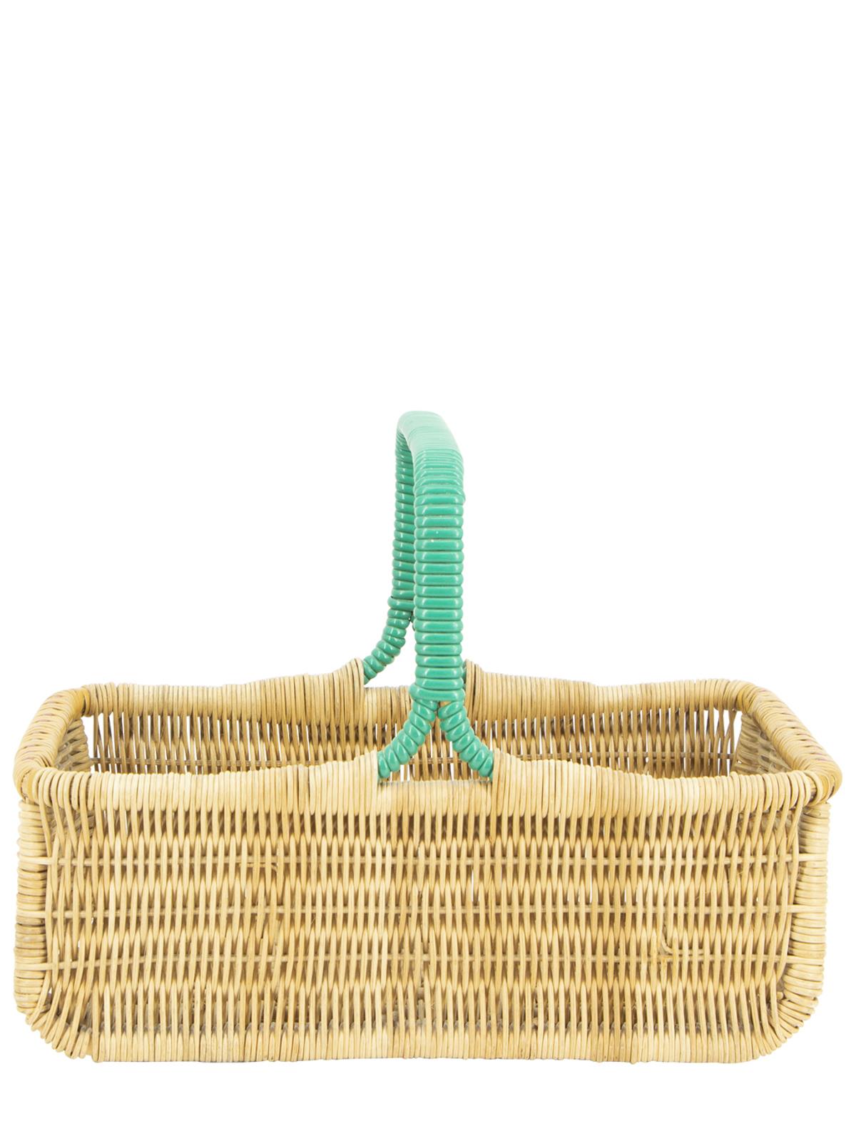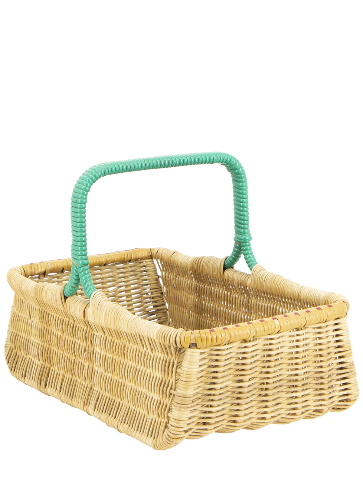 Contrasting green vinyl wrapped handle plus red decor to the shorter sides.