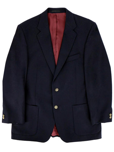 A single-breasted navy blue vintage blazer with a classically vintage design. Patch pockets and notch lapels.