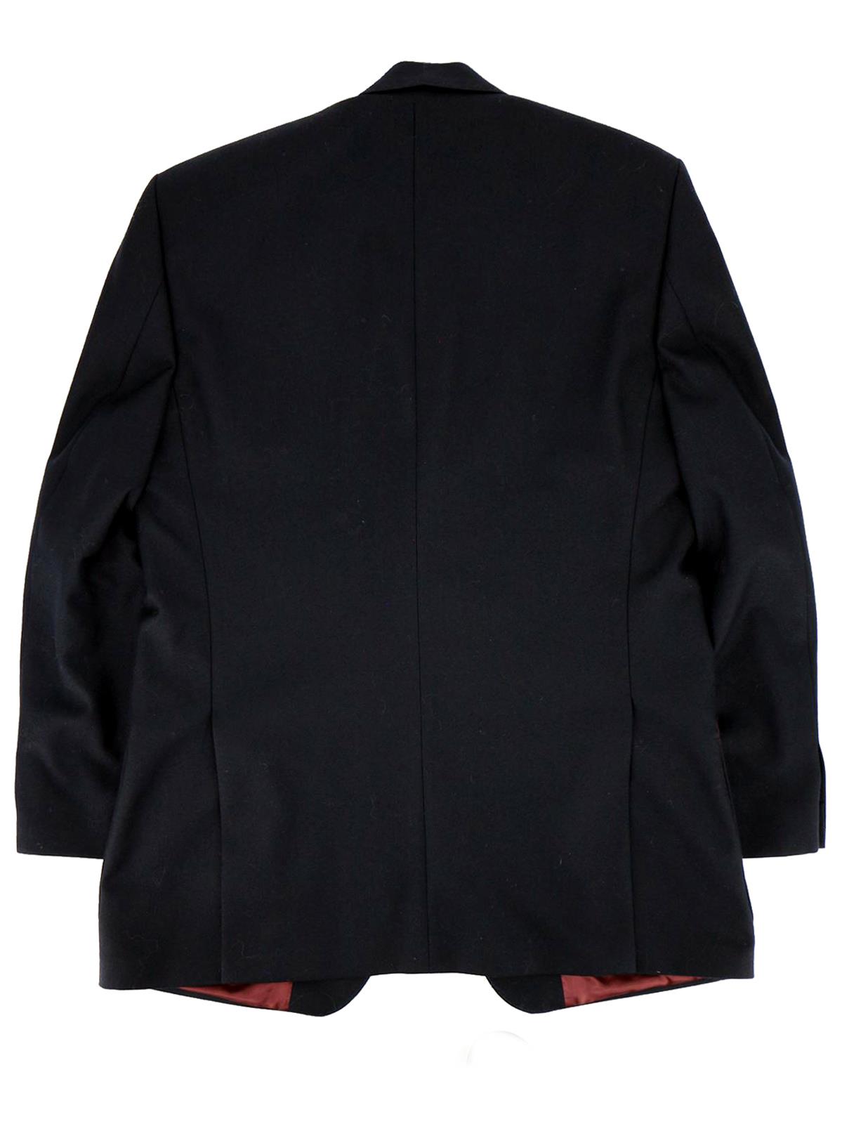 Two gold buttons to fasten the jacket, and two additional matching buttons at each cuff. Double back vents and fully lined inside.