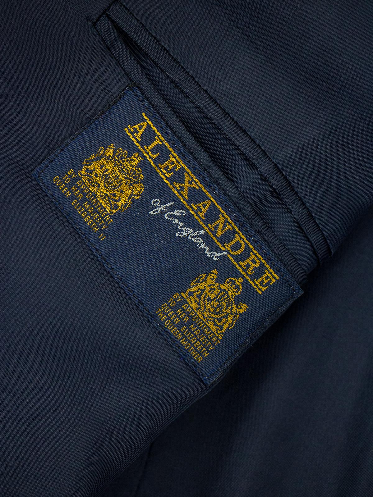 A British, vintage wardrobe staple in quality pure new wool. This navy blue, double-breasted blazer has gold-tone metal buttons to front and sleeves, featuring a regal crest motif.