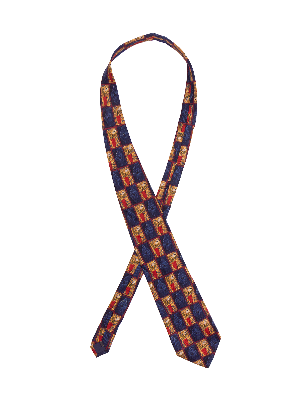 Navy Geometric Floral Pattern Vintage Silk Tie