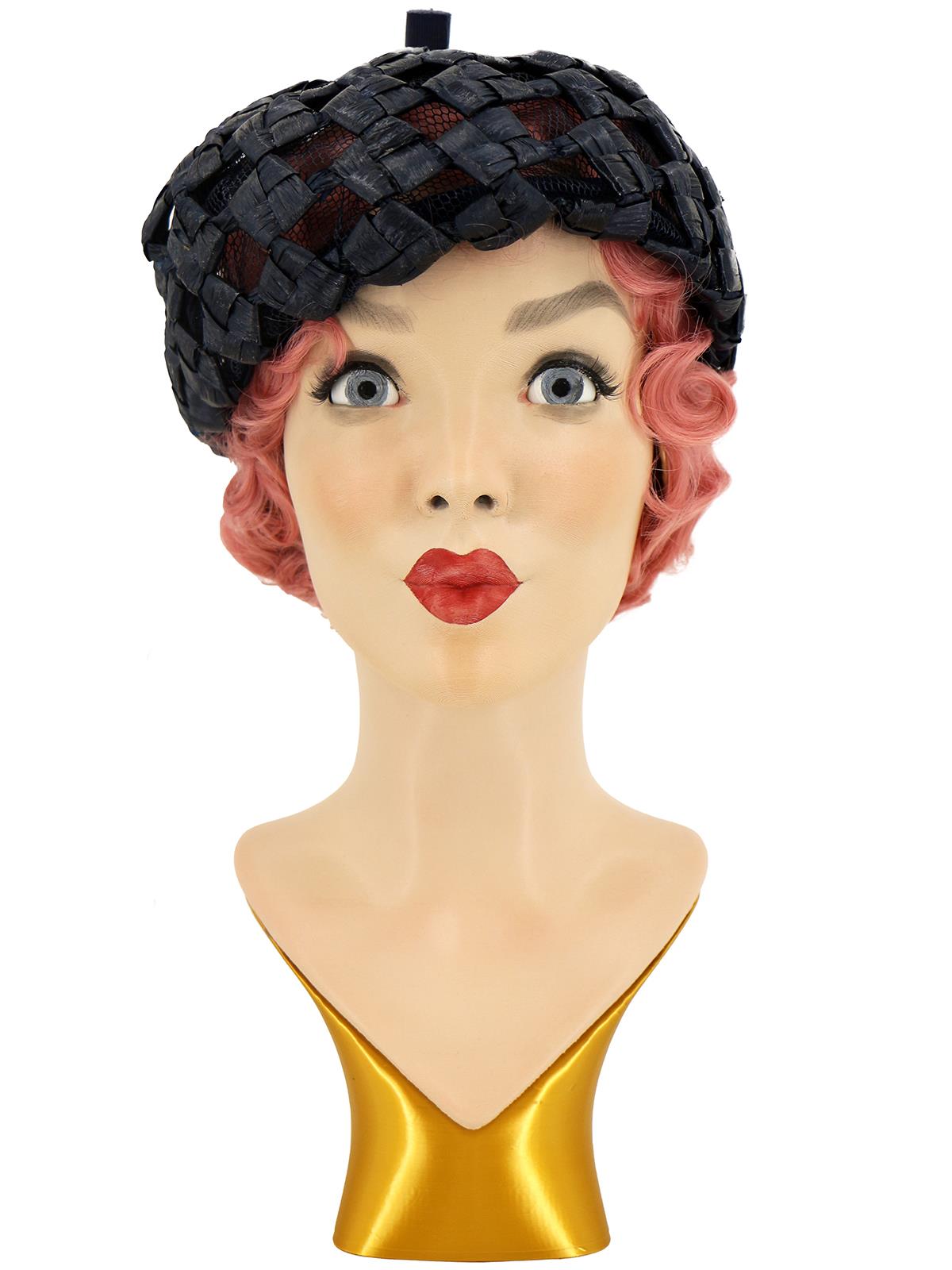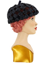 Navy Netted Woven 1960s Vintage Beret Hat