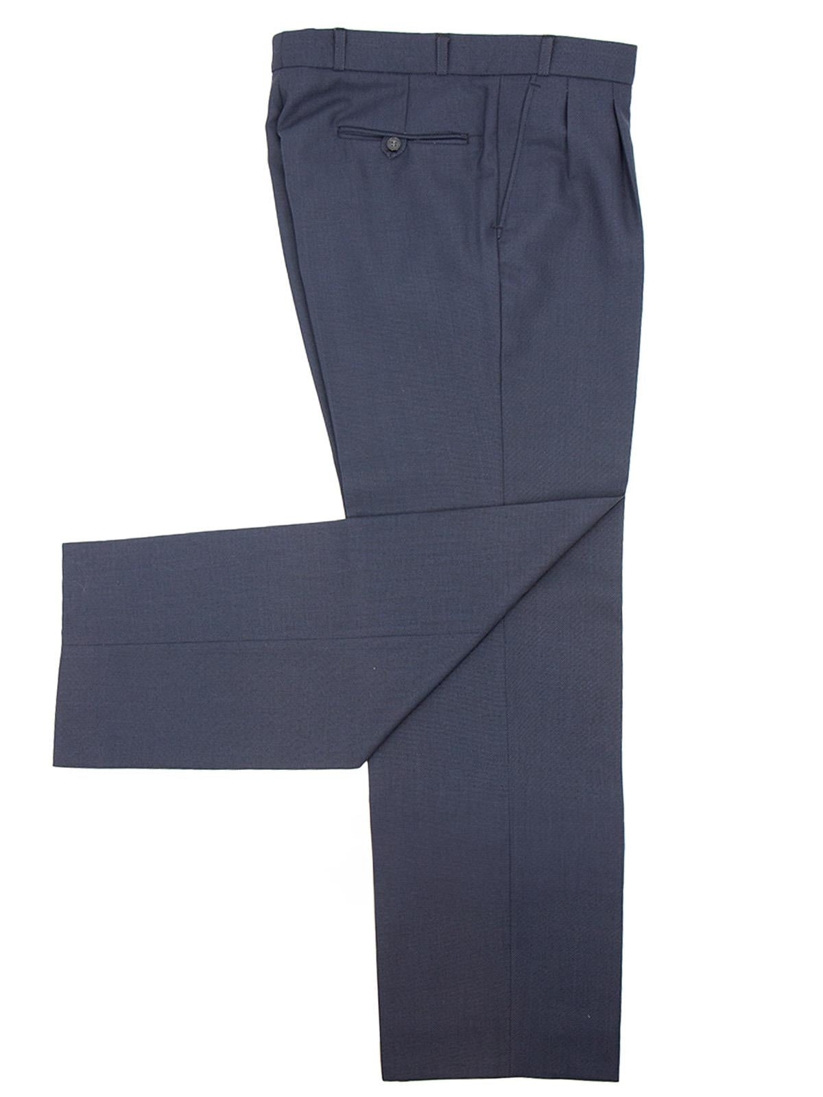 The trousers feature a double-pleated front and belt loops on the waistband.
