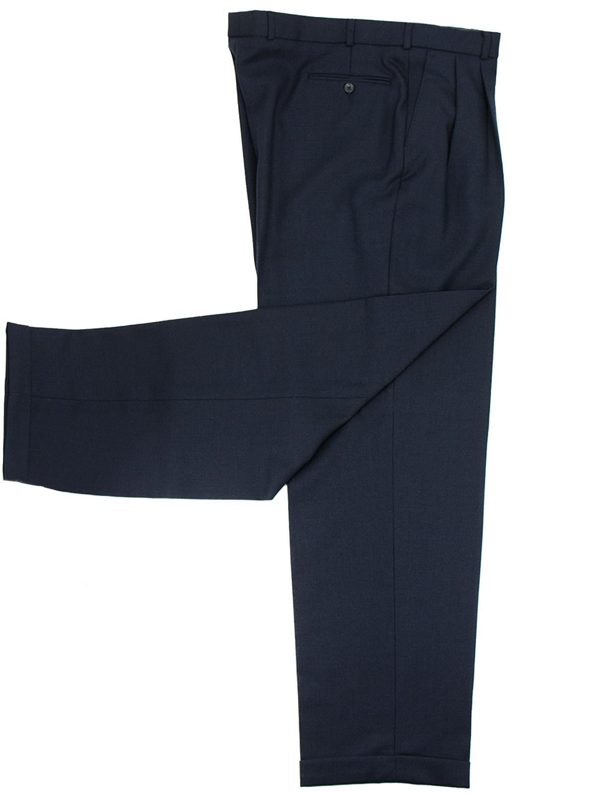 The suit trousers are pleat-fronted and turned up in true demob style, with a maroon ribbon running on the inside waistband for a real sense of style . Perfectly paired with a vintage tie.