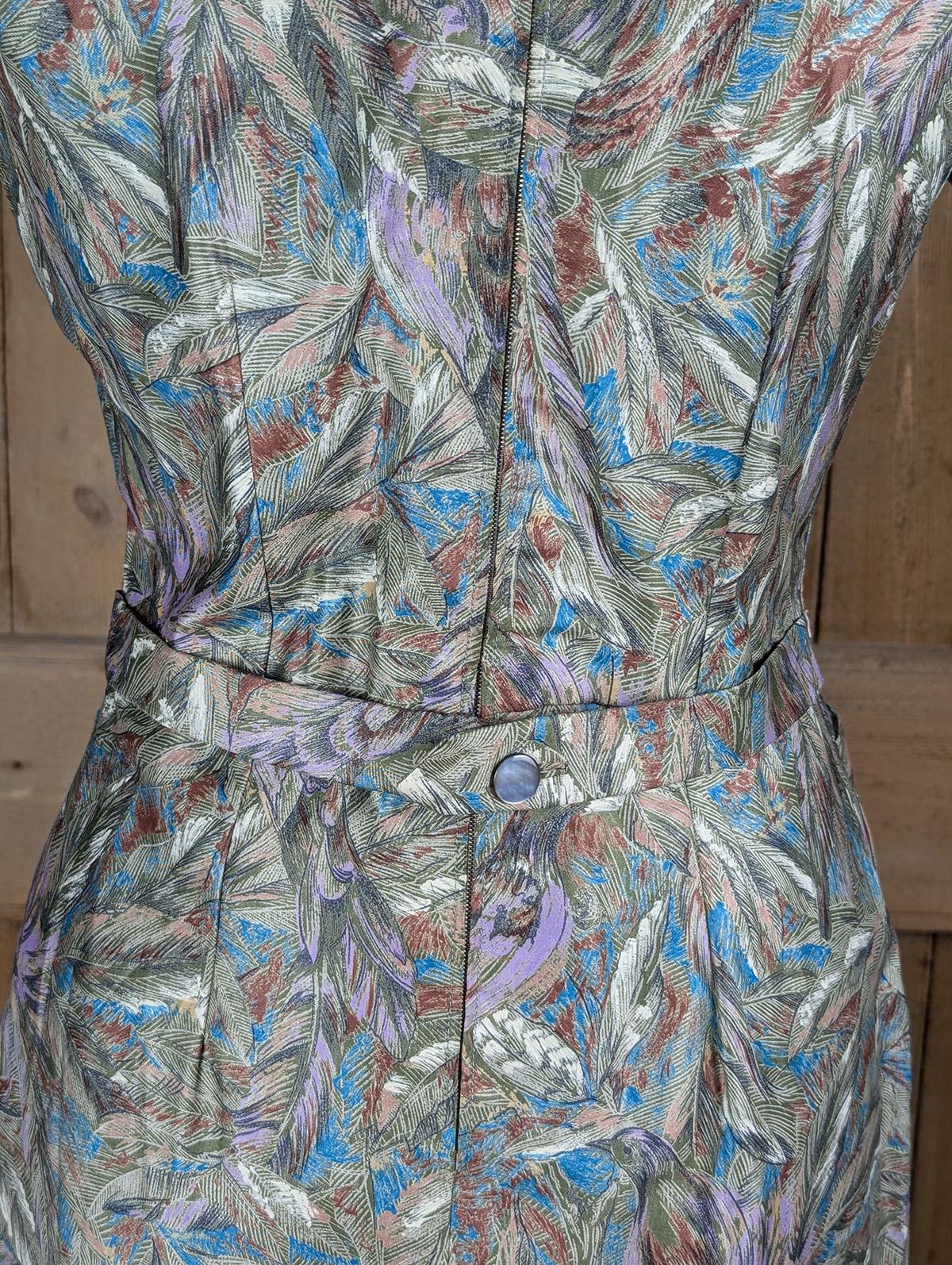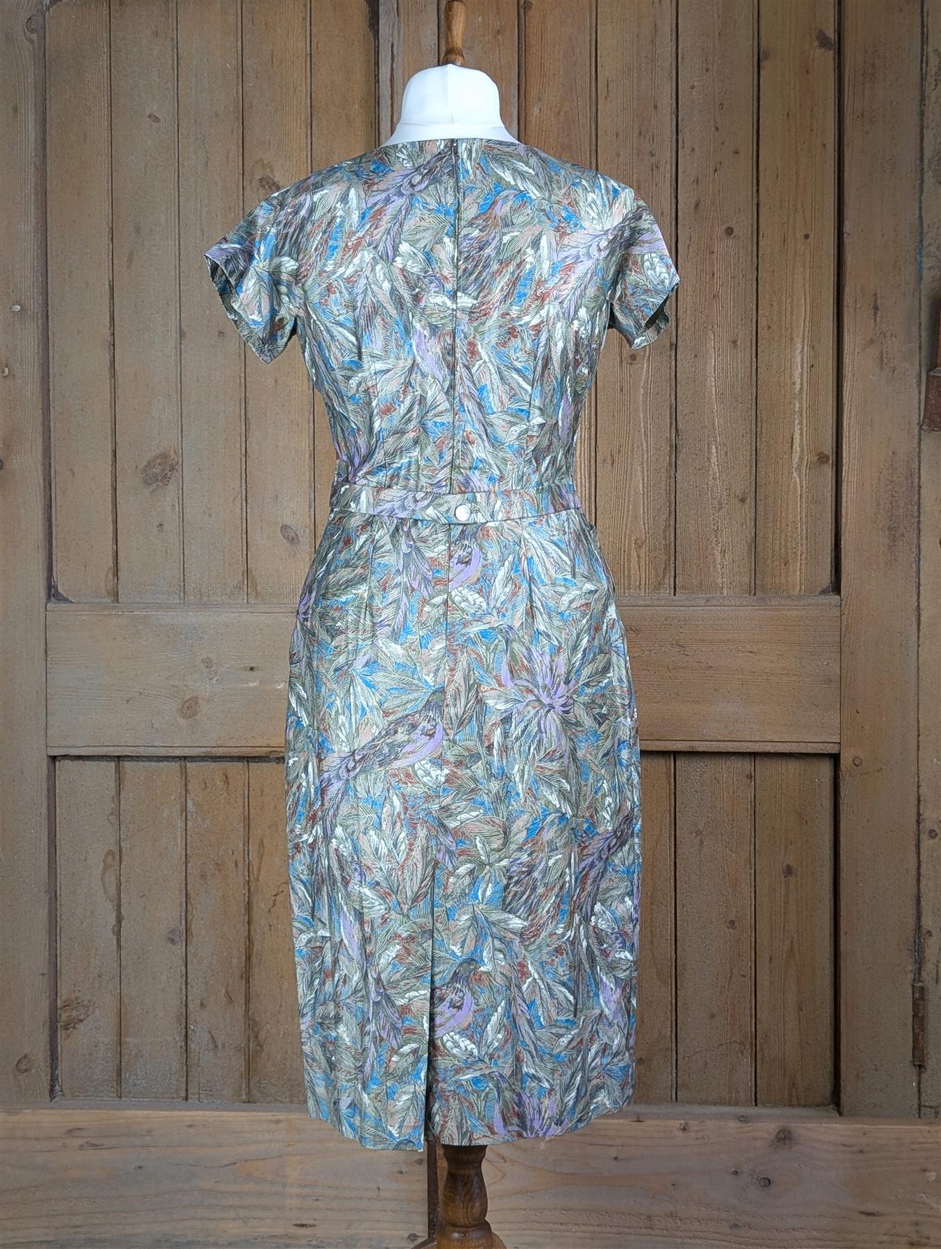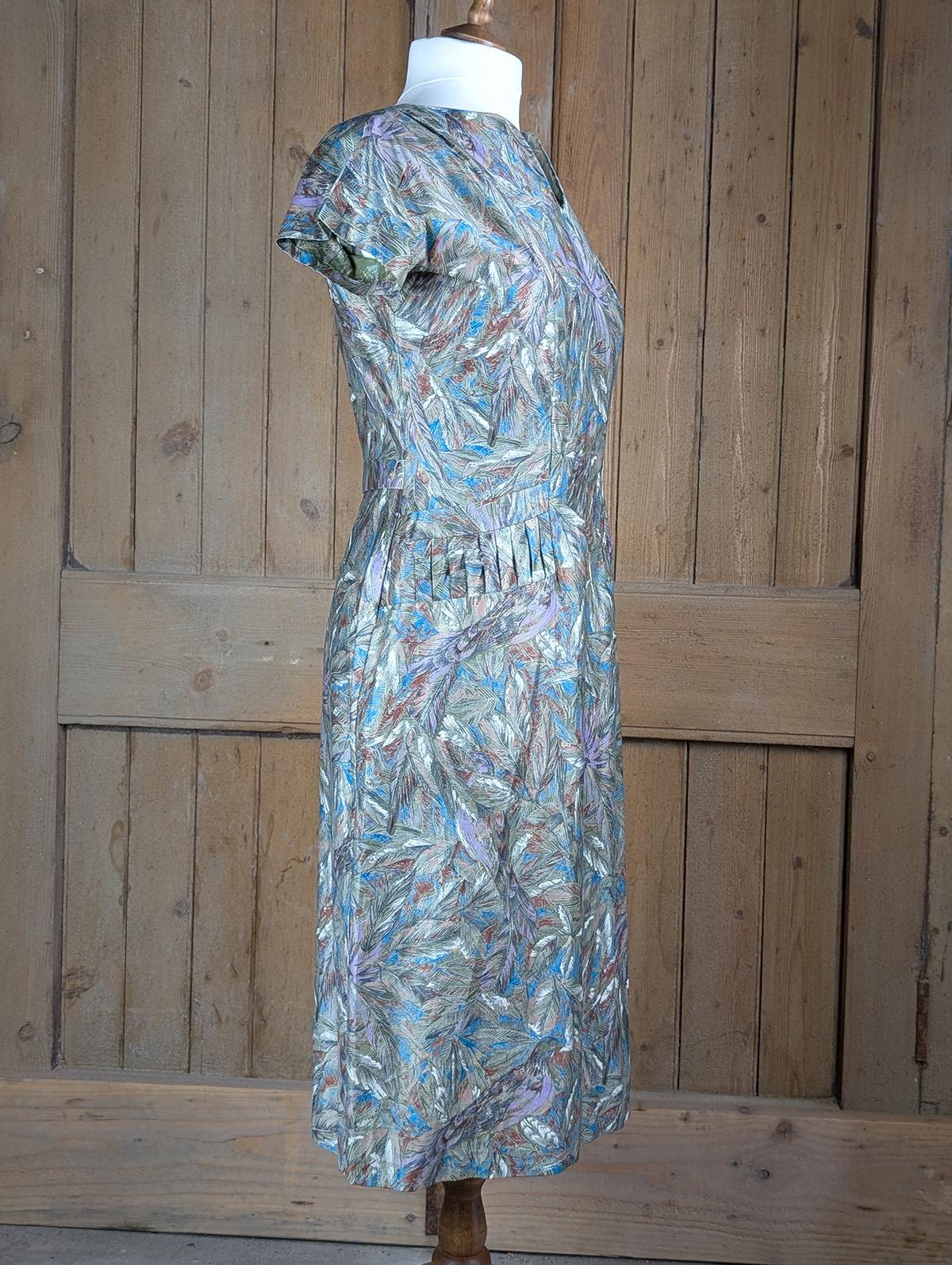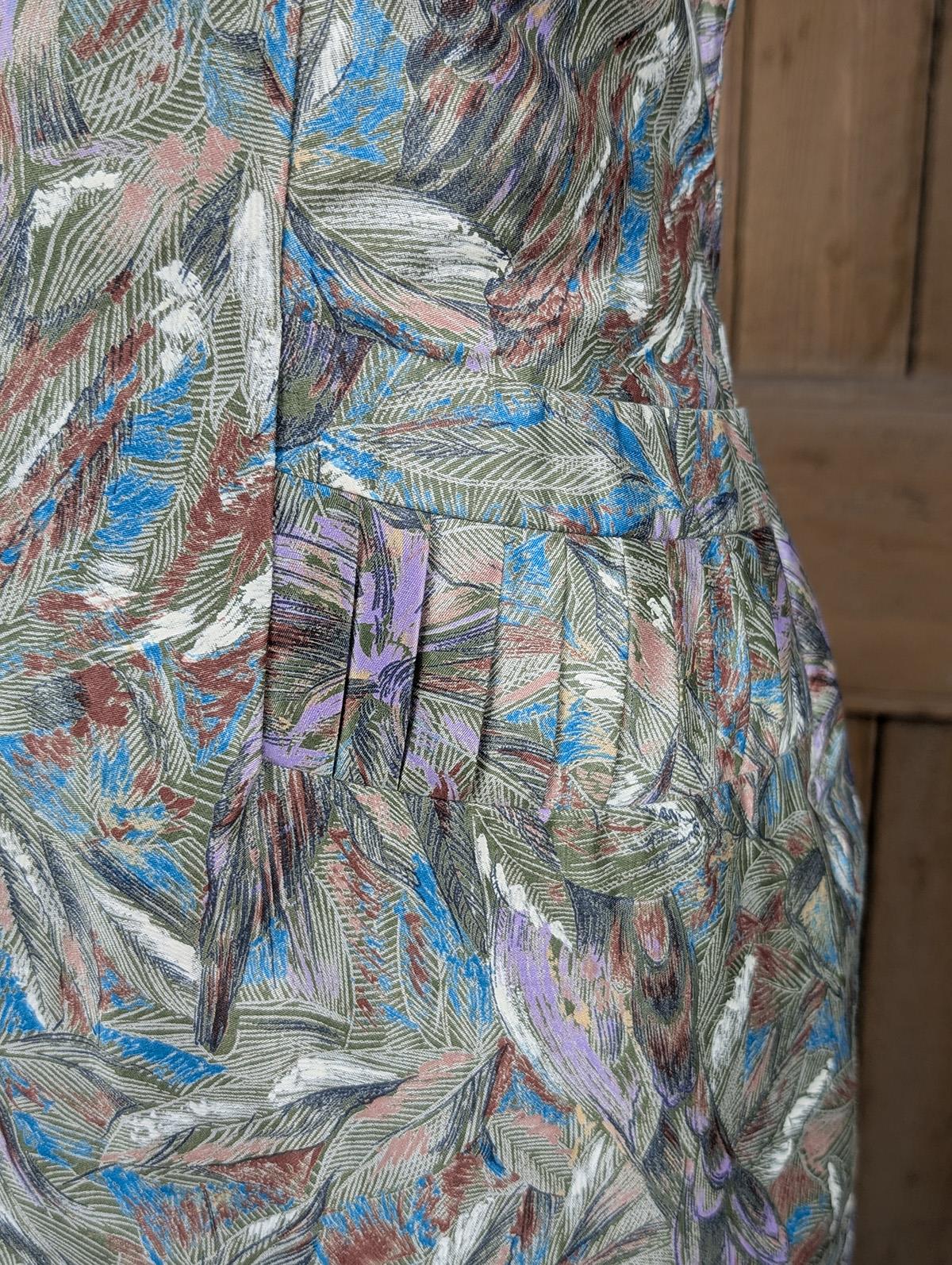An eye catching original vintage dress with some fabulous key details such as shell like upper bodice and pleat feature hip pocket.