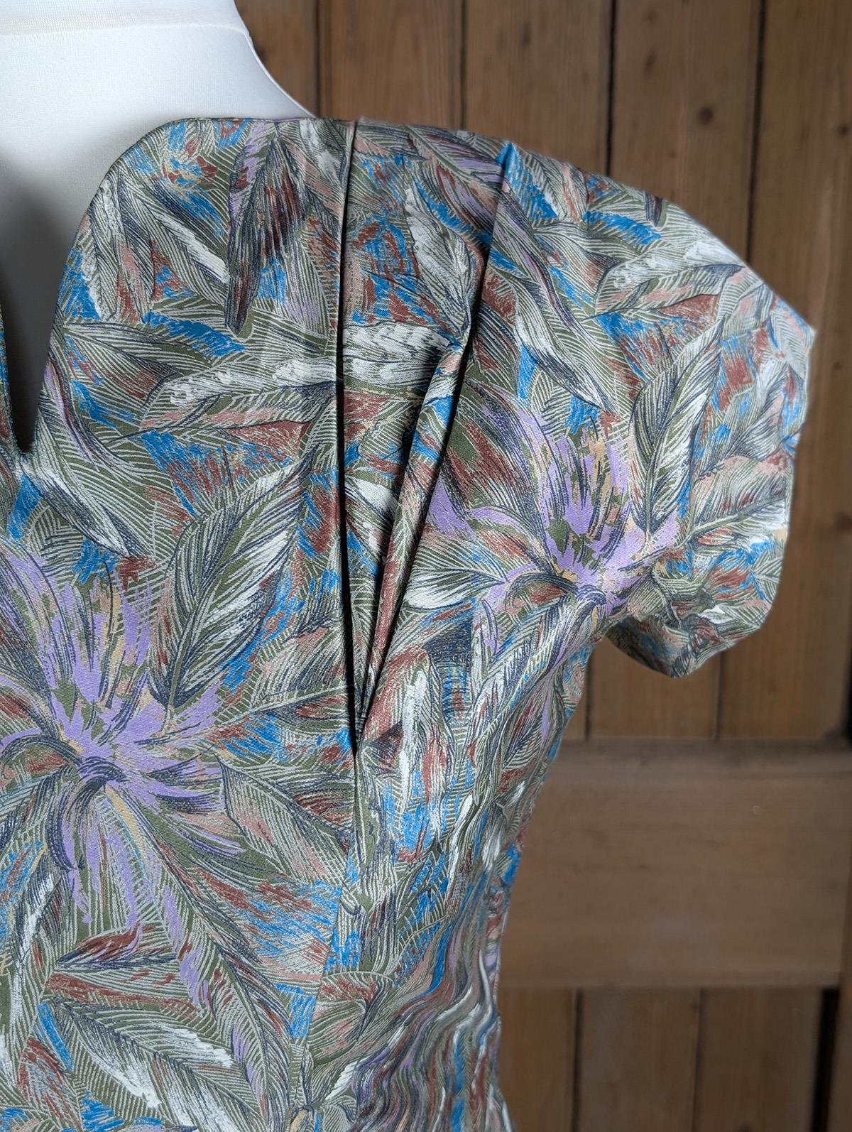 Original 1950s Shell Bodice Glazed Cotton Dress