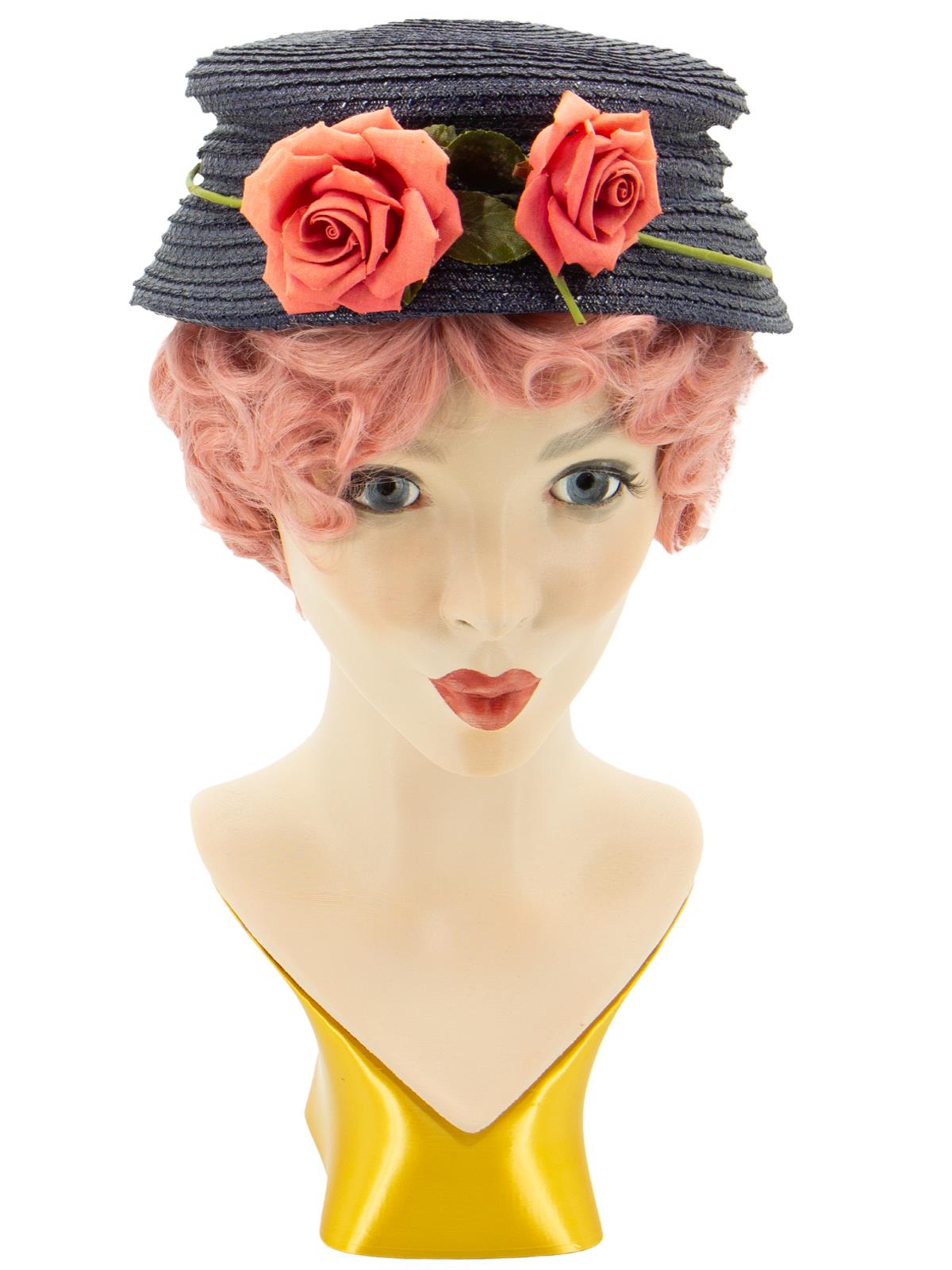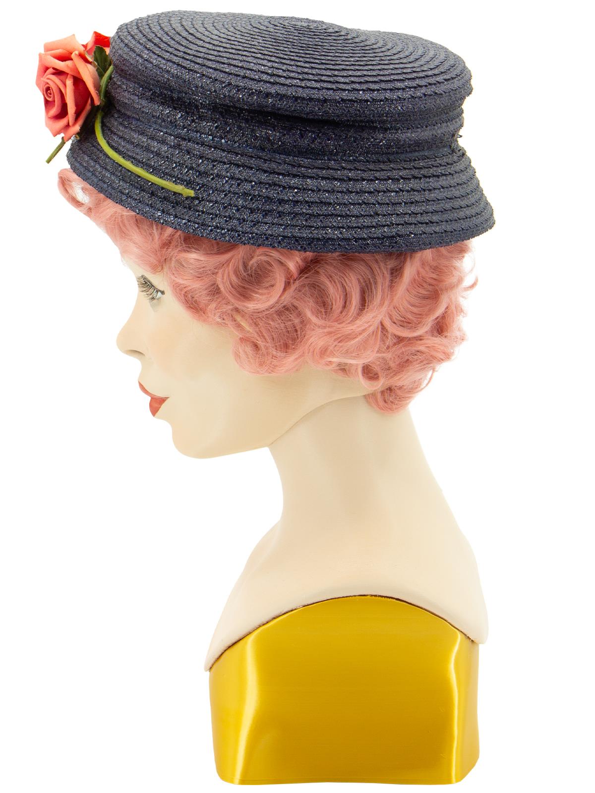 Sweet genuine vintage 1940s 50s French blue hat with a down turned brim.