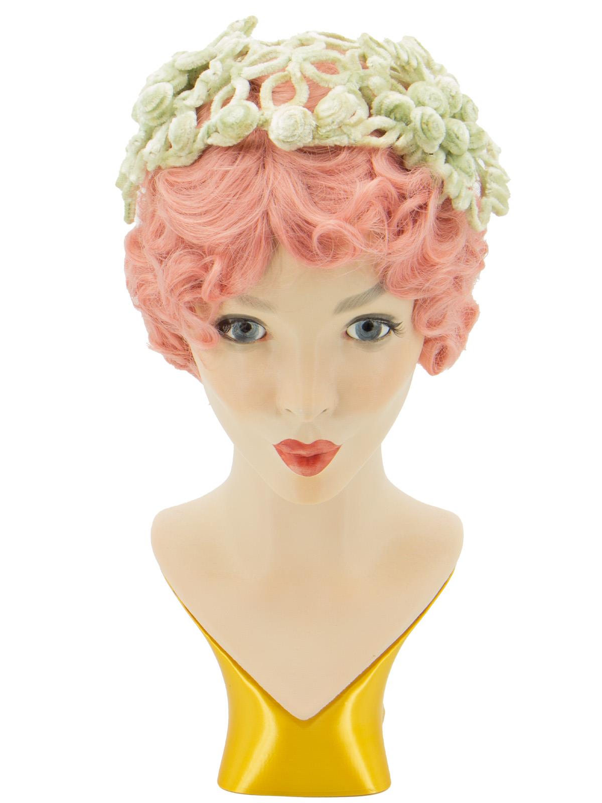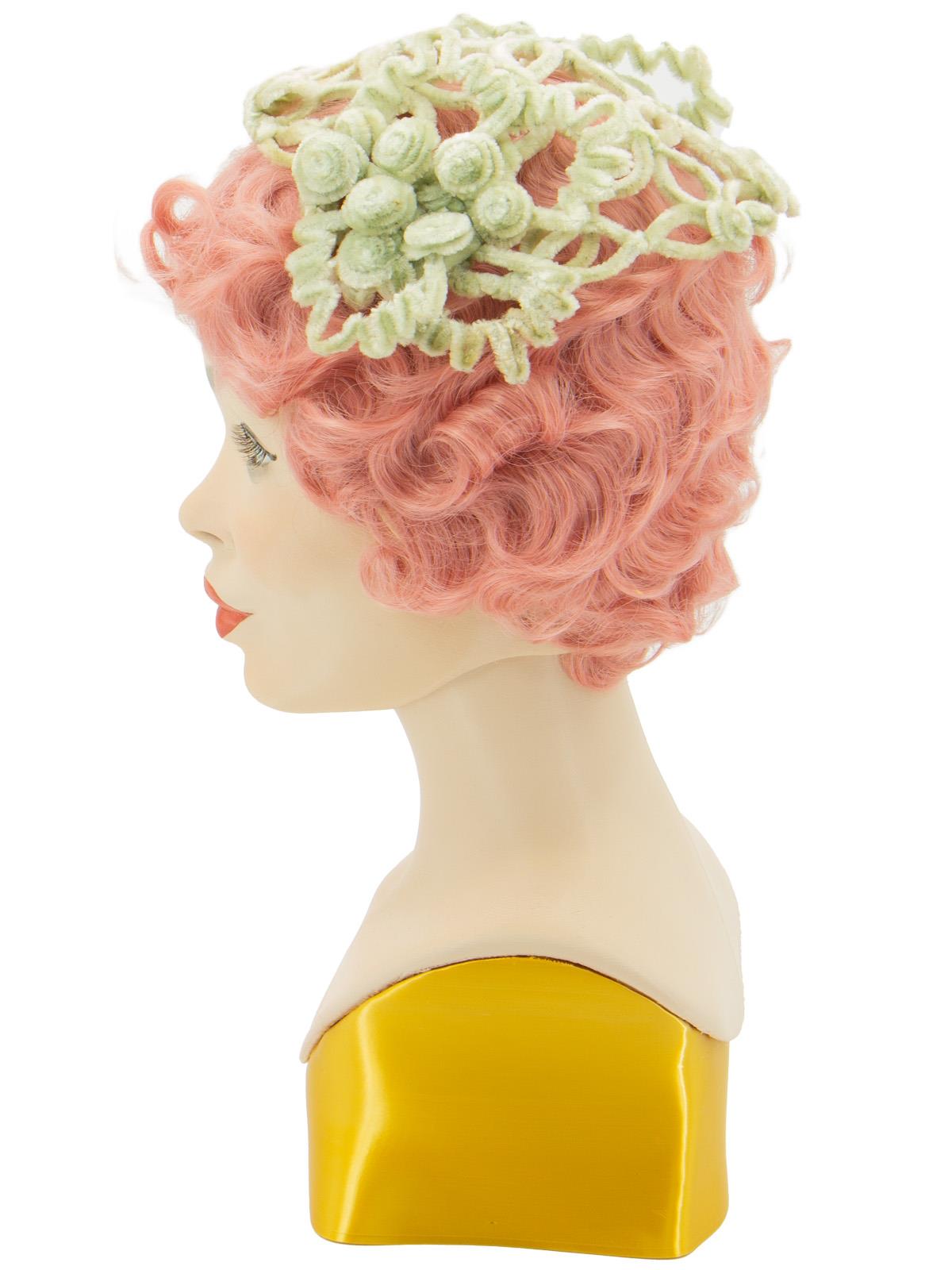 Pale Silver Velvet Fretwork Crescent Half Hat