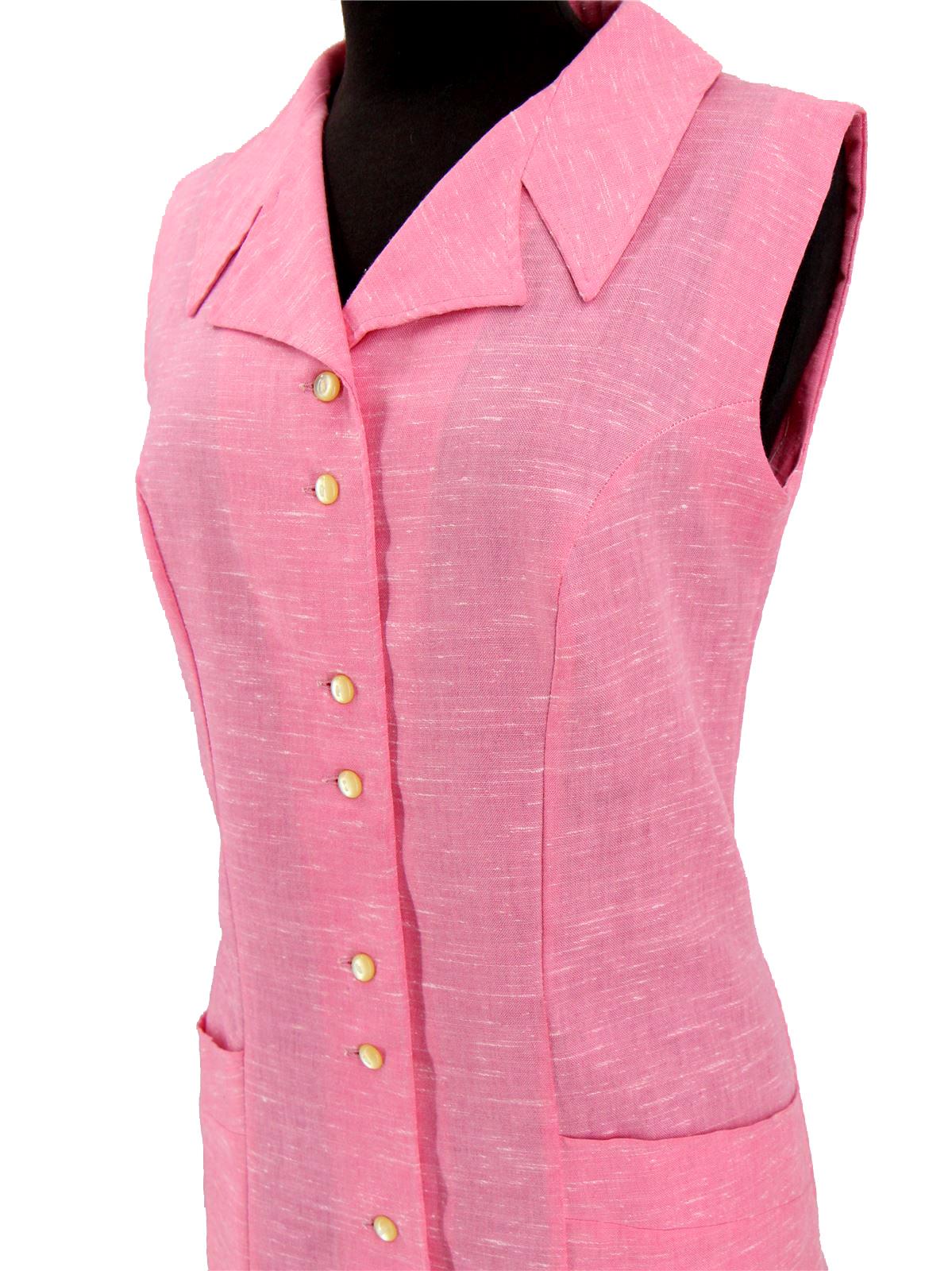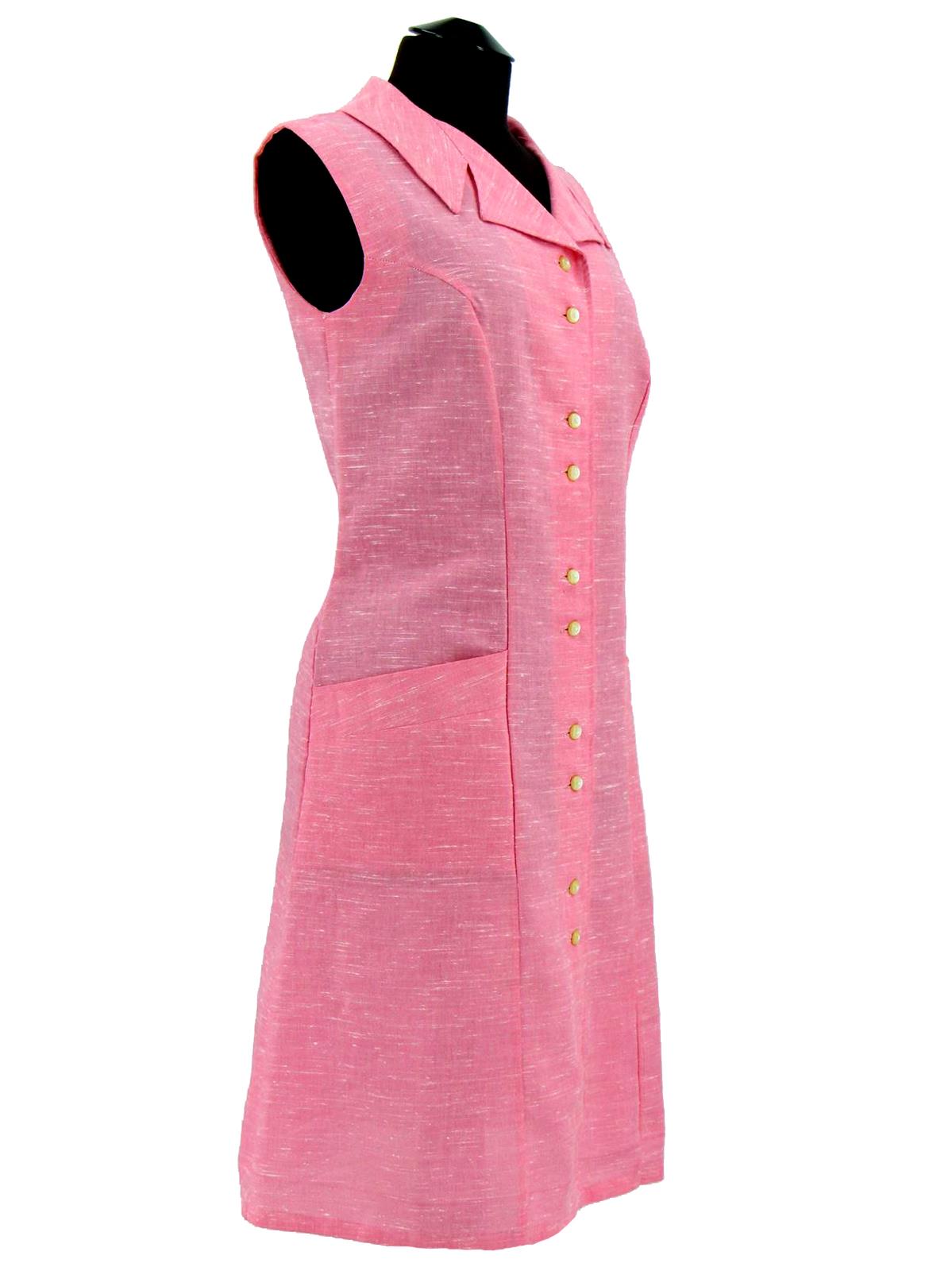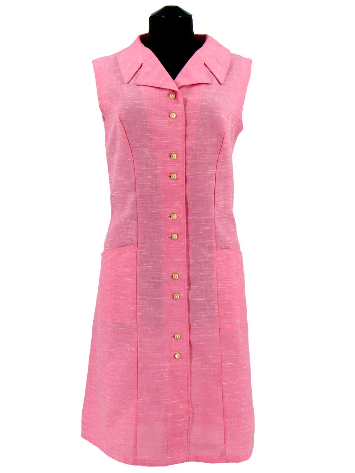 Charming 60s vintage day dress with a statement wide notch collar, button-through design, and deep pockets at the waist.