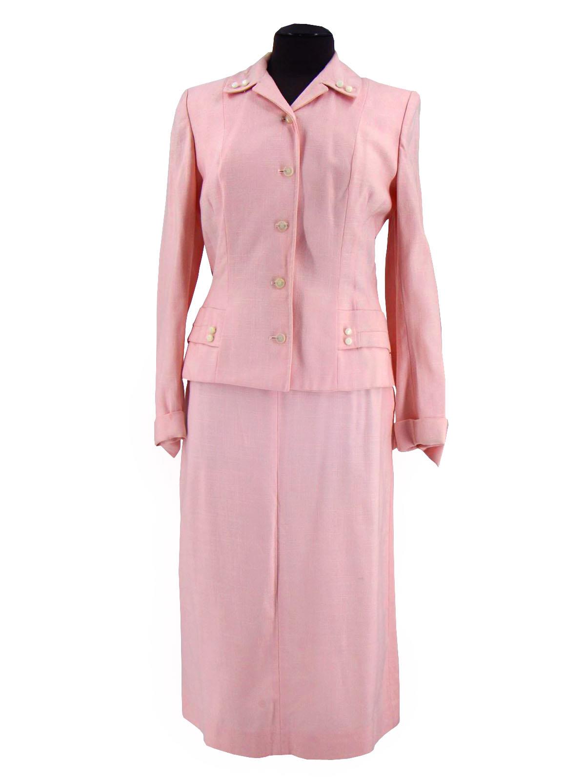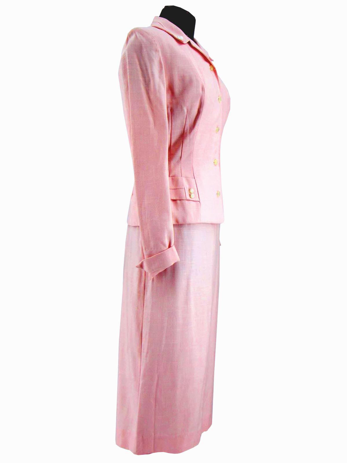 Pink Linen 1940s True Vintage Summer Skirt Suit