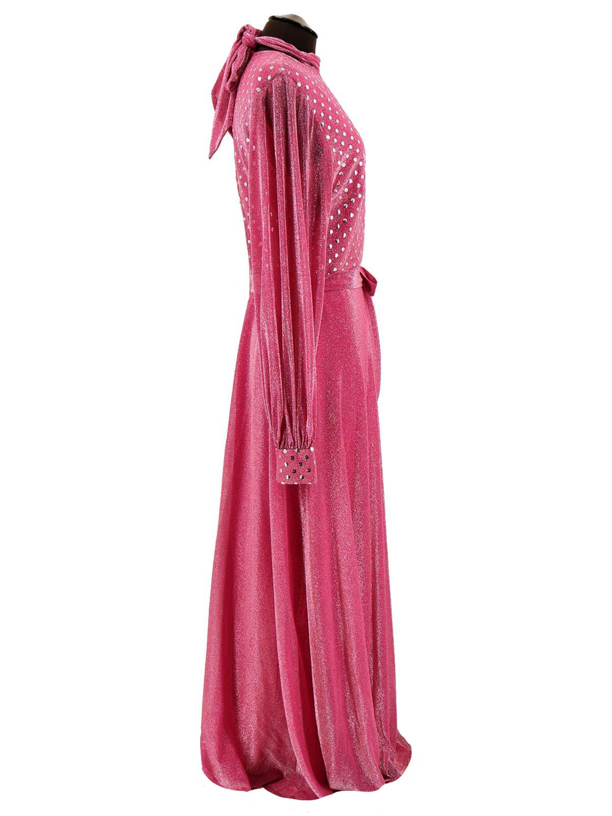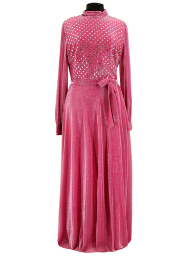 The bodice and cuffs are decorated with round silver sequins that complete the evening feel of this quirky seventies piece.