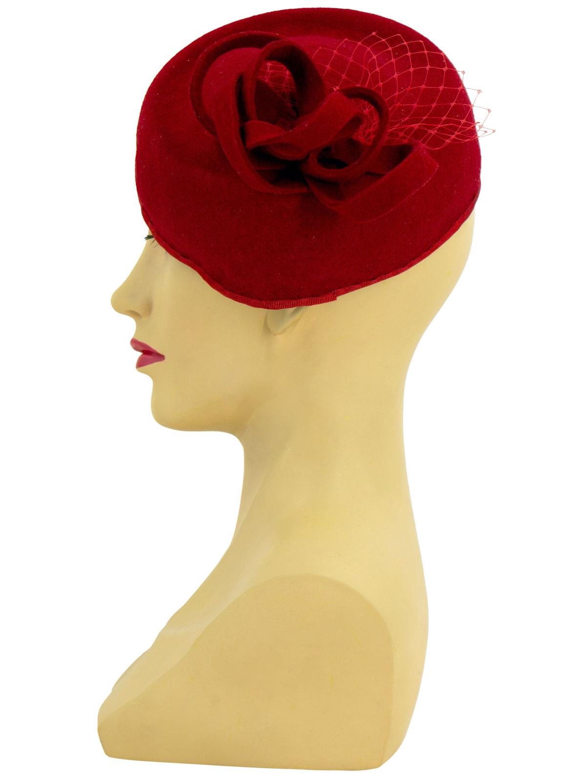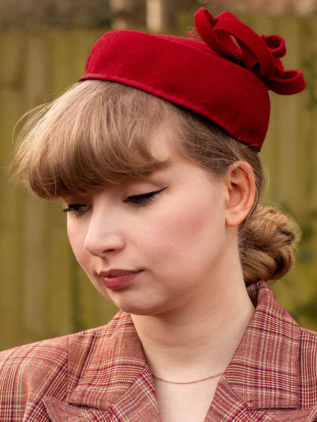 Poppy Red Felt 1940s Vintage Style Pillbox Hat