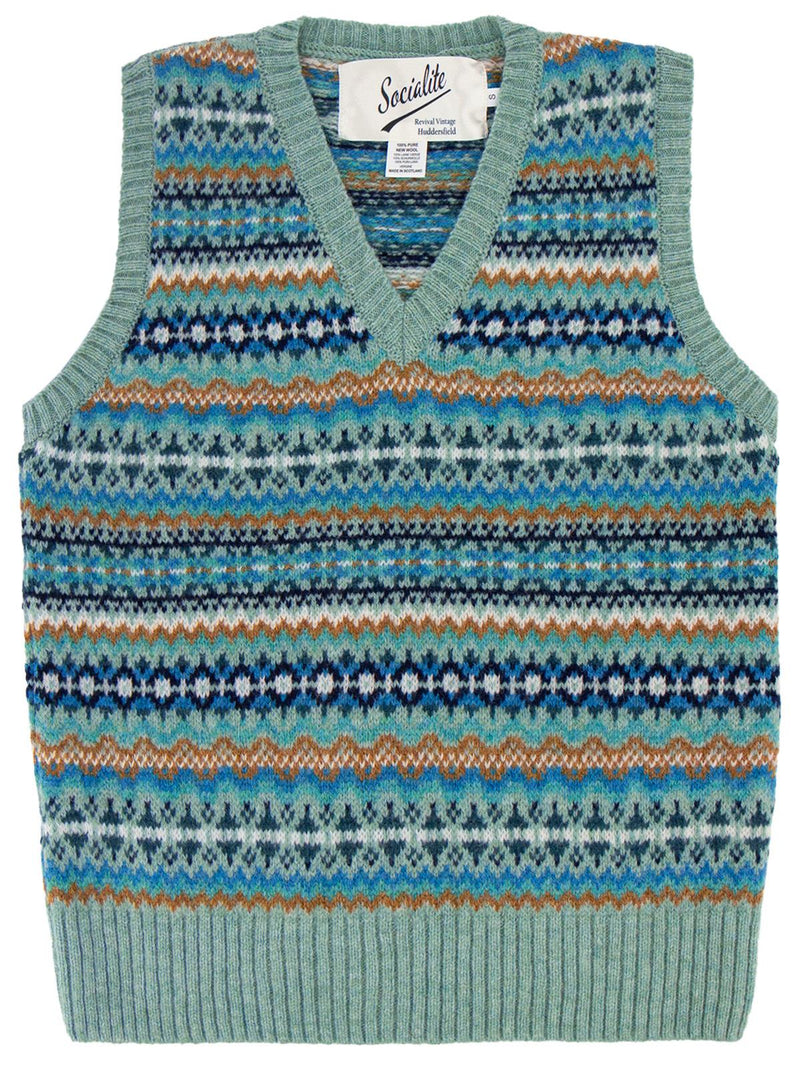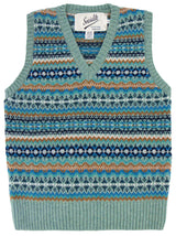 Pure Scottish Wool Fairisle Knit Tank Top in Fauna Blue