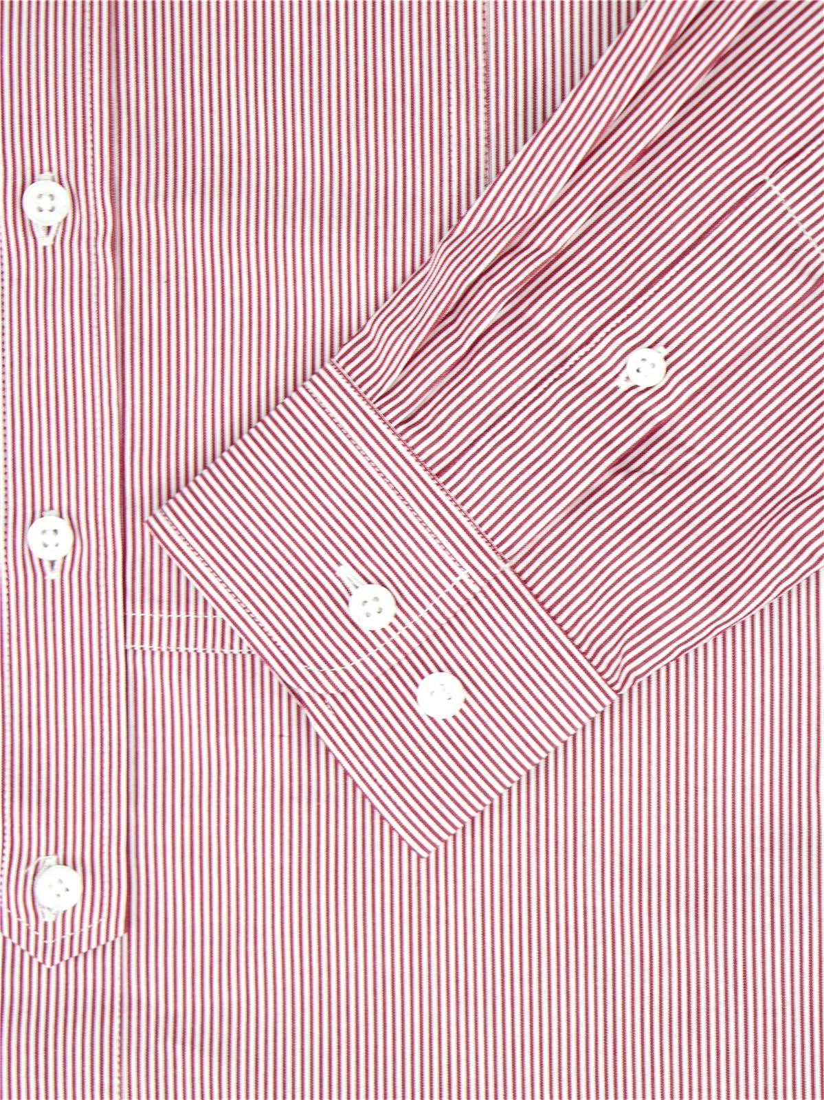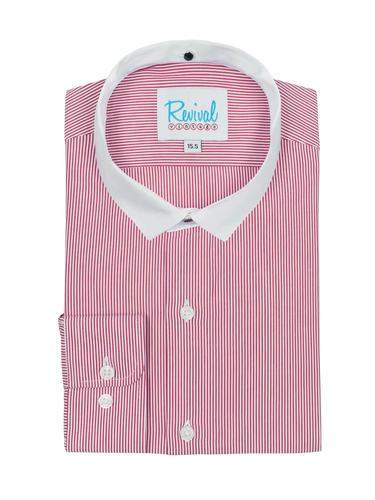 Red Stripe Collarless Grandad Shirt with Detachable Bankers Collar