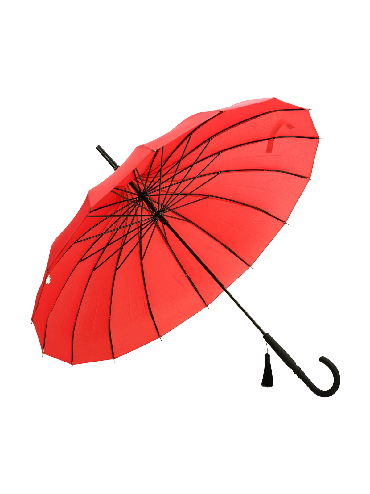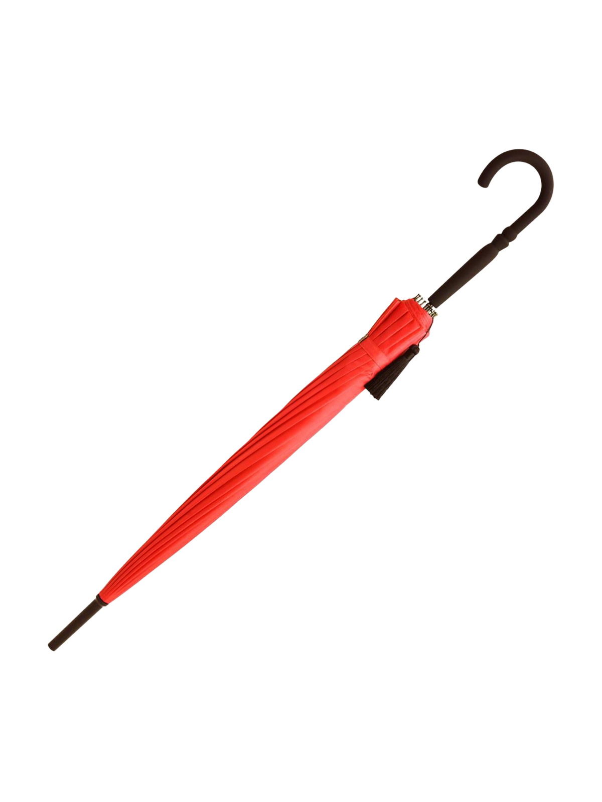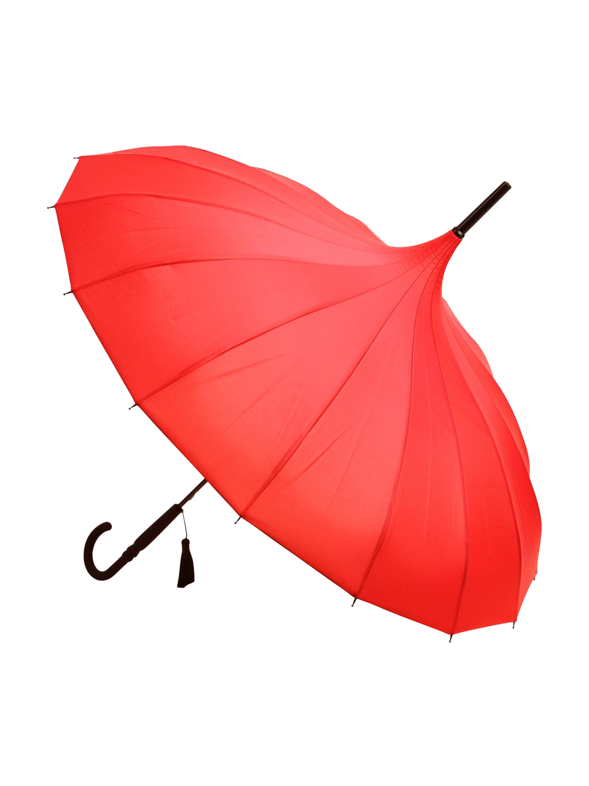 Classic retro look pagoda umbrella in a sassy bright red shade. Black crook handle.
