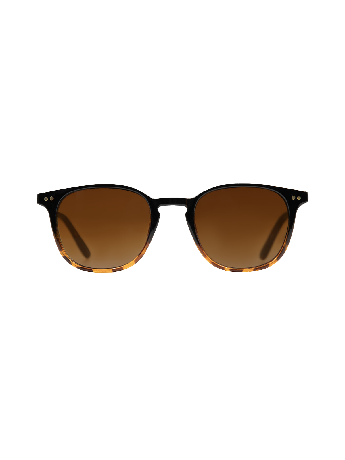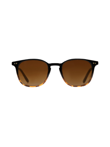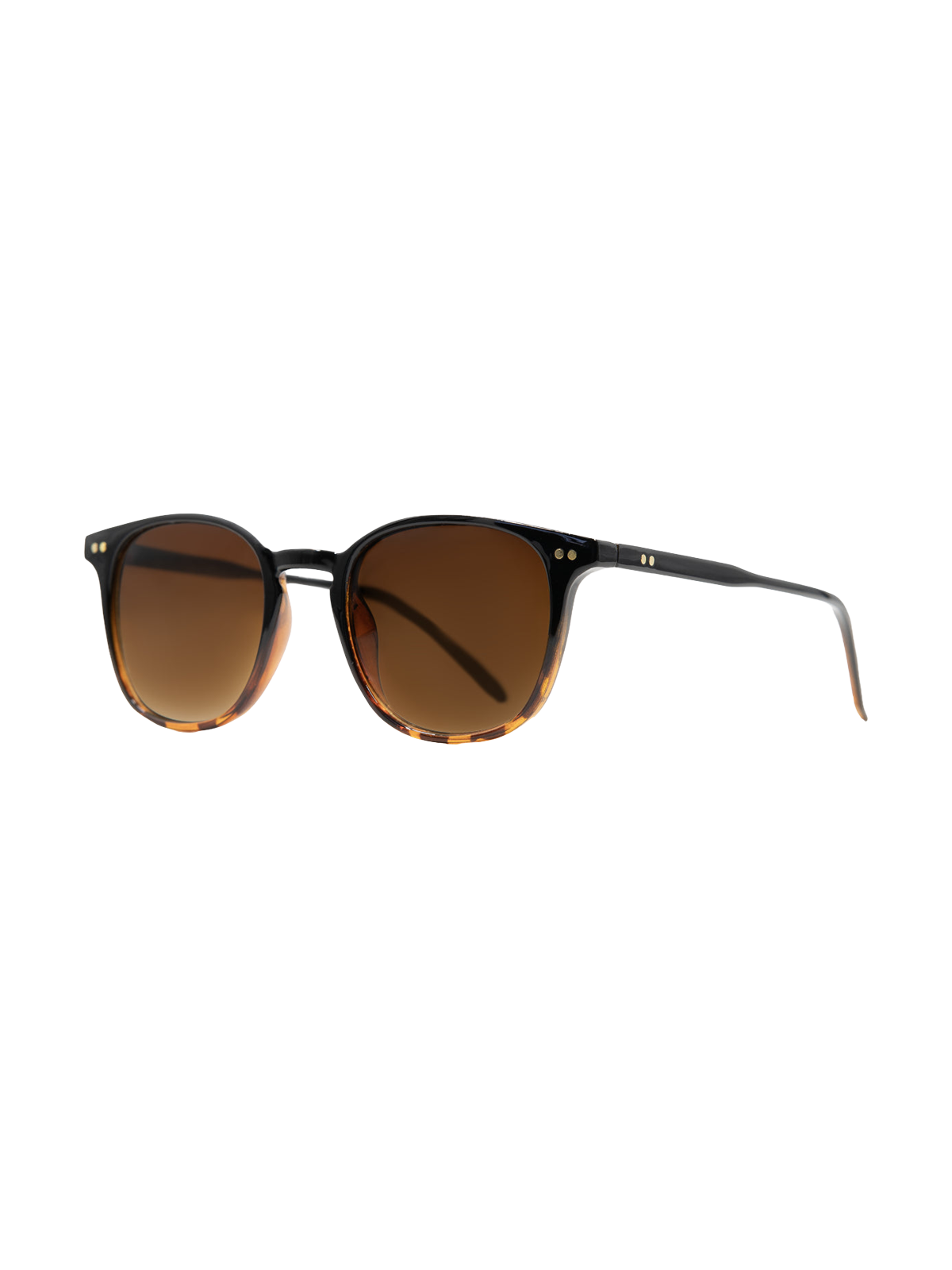 Features a classic brown tortoiseshell frame, with brown tinted lenses.